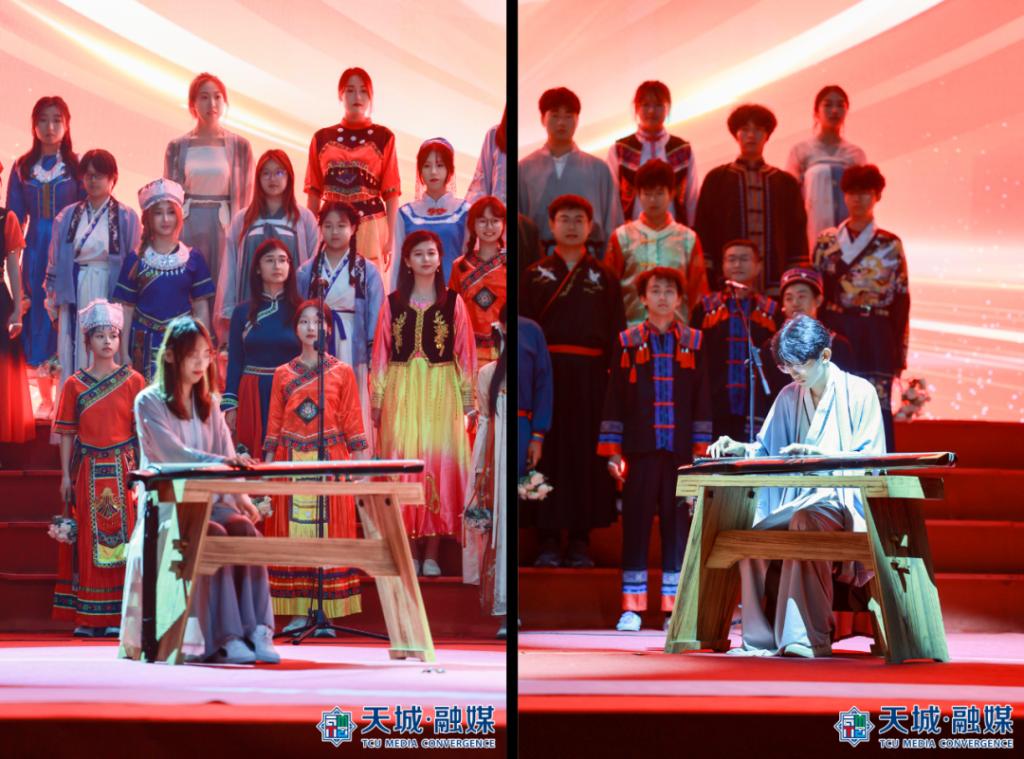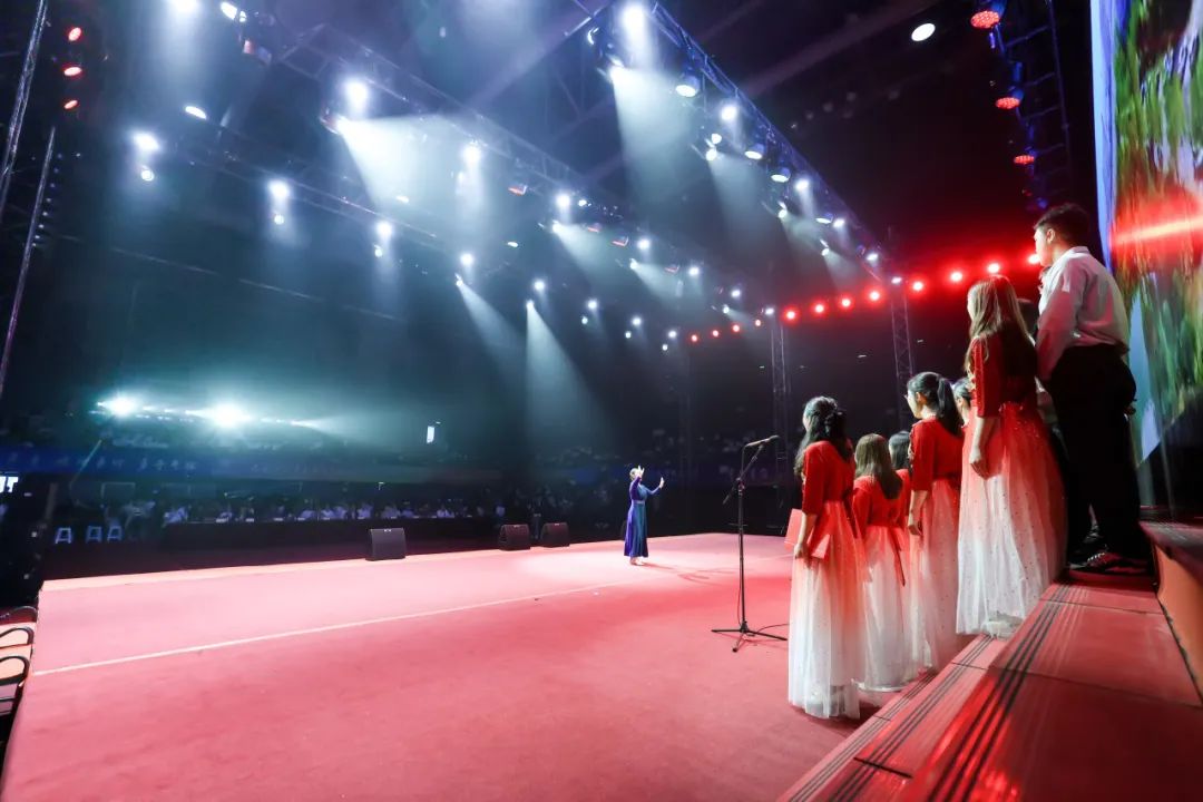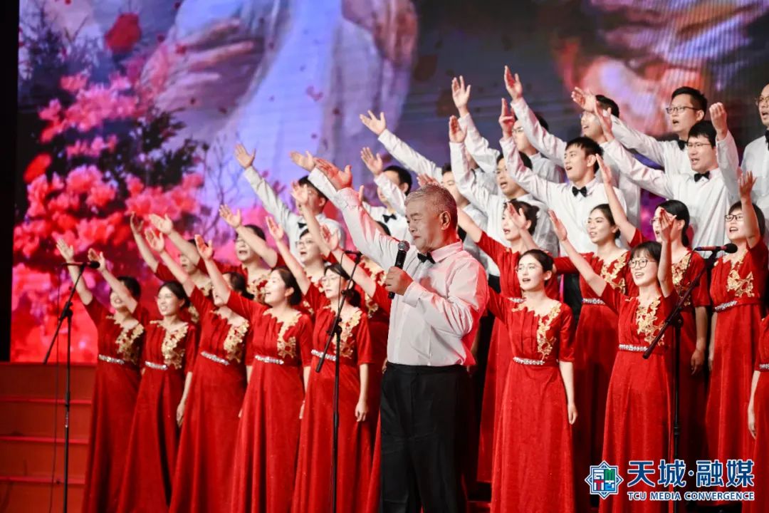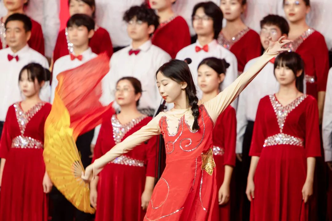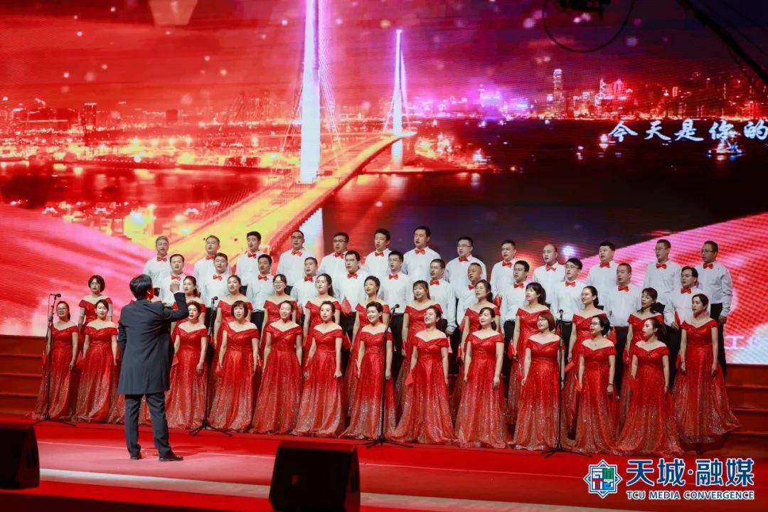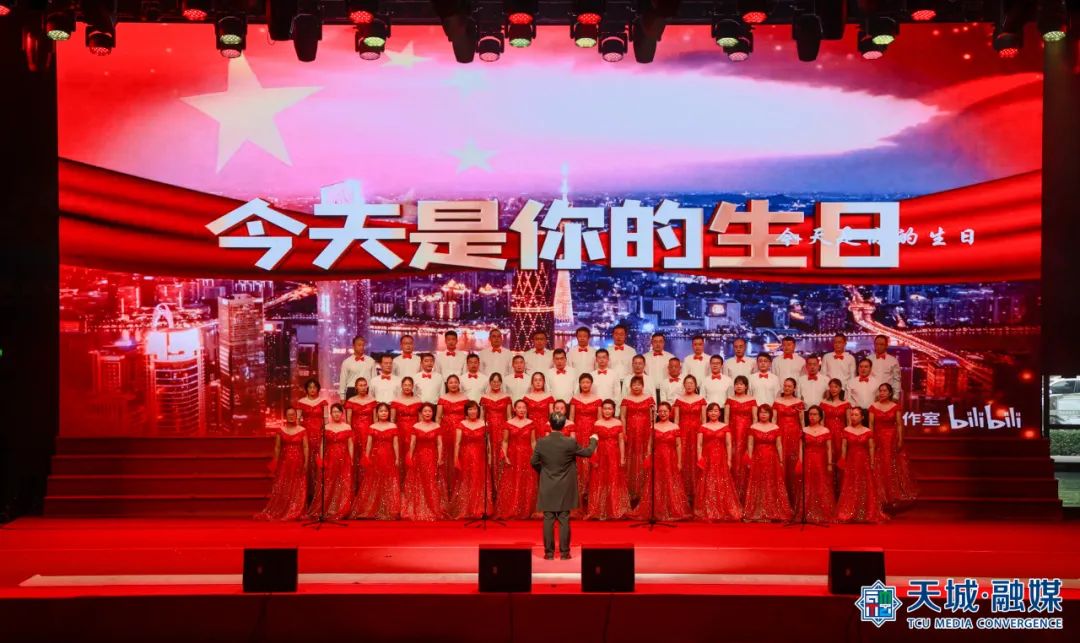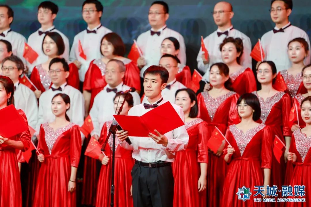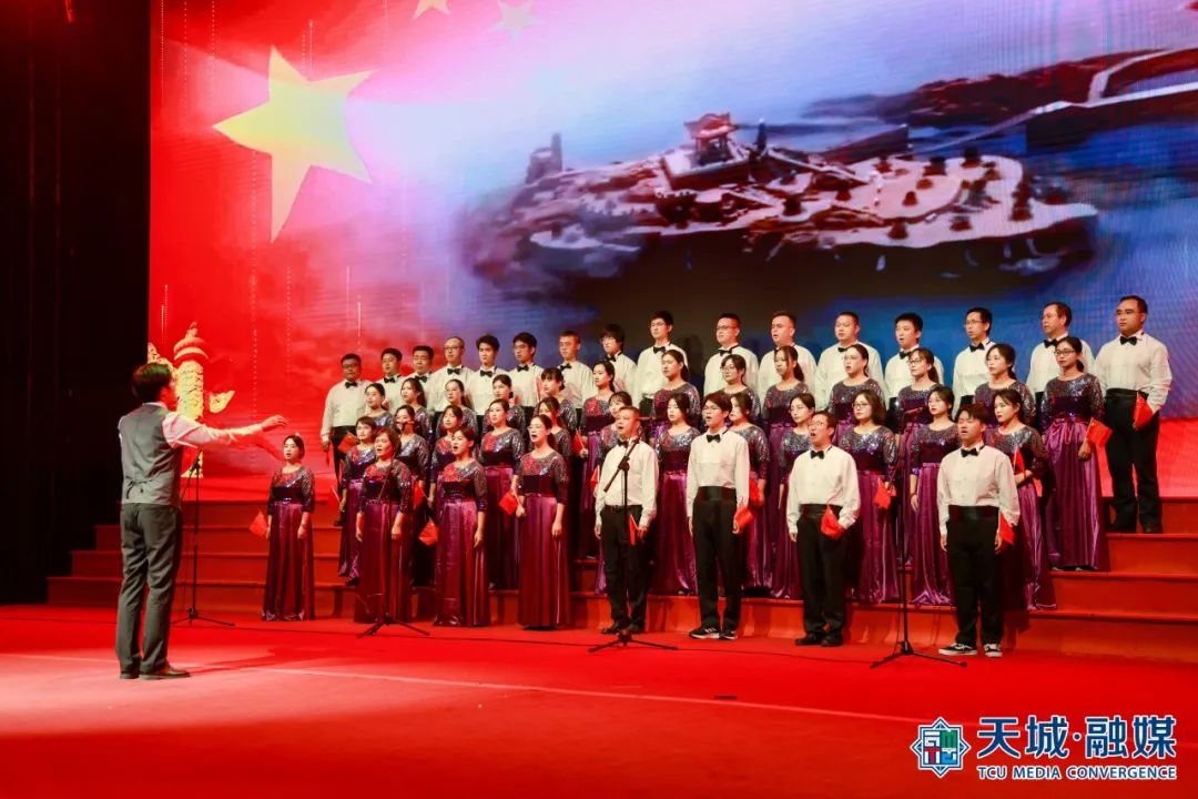 “我们祝福你的生日我的中国,这是儿女们心中期望的歌......”合唱比赛在《今天是你的生日,中国》的歌声中拉开序幕。《爱我中华》《我和我的祖国》《唱支山歌给党听》《歌唱祖国》《四渡赤水出奇兵》等耳熟能详、豪迈雄壮的红色经典曲目陆续唱响。比赛现场灯光璀璨、气氛热烈,17支参赛队伍、2支展演队伍纷纷亮出绝活,或深情朗诵,或载歌载舞,新颖的编排、磅礴的气势、饱满的热情赢得了现场观众阵阵掌声和欢呼声,浓厚的爱国主义氛围感染者现场的每一位观众。