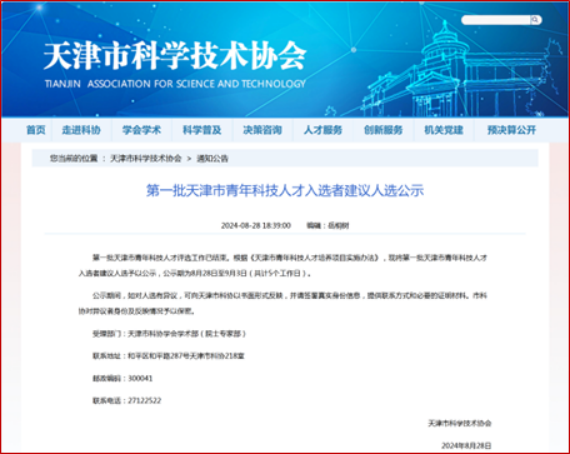 天津市青年科技人才项目于2023年首次设立,旨在选拔具有较强创新潜力的青年科技人才,支持他们潜心研究、深入探索,培育一批有望在世界科技前沿取得突破的优秀青年科技人才,其中第一层次要求不超过43周岁(含),全市各行业评选15名左右。