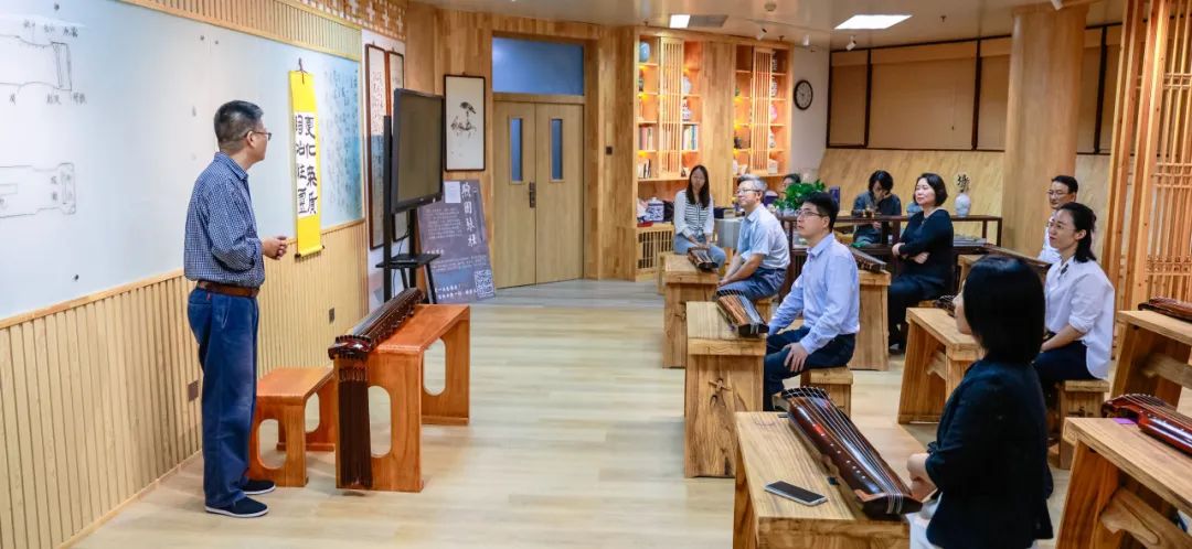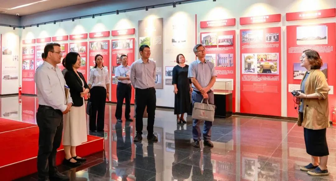 会后,与会同志先后来到学校革命丰碑展馆和中华优秀传统文化体验中心暨古琴弦歌基地参观。在革命丰碑展馆,建筑学院副院长、第四批全国高校党建工作样板党支部书记李小娟介绍了该展馆作为全国首家以红色建筑讲述地方党史的建设的缘起和发展情况,特别是在党建与业务深度融合方面的积极探索和显著成效。近年来,依托“革命丰碑—天津市革命遗址展览”,365英国建立了全市首个红色建筑数据资源库和红色思政资源库,成立了全国高校首个红色文化遗产研究院,产出近40项科研课题、资政建议等成果,整理出版专著《天津百座建筑中的百年党史》等。在古琴弦歌基地,马克思主义学院党总支书记高燕介绍了中心的建设情况,薄克礼教授介绍了该基地在打谱创作、琴歌吟唱、学术研究、传统文化课程开设、大中小学思政课一体化推进、指导学生社团、开展社会服务以及打造“弦歌不辍”中华优秀传统文化育人品牌等方面工作,并与煦园琴社同学进行了现场弹唱,指导参观者进行基本古琴指法体验。