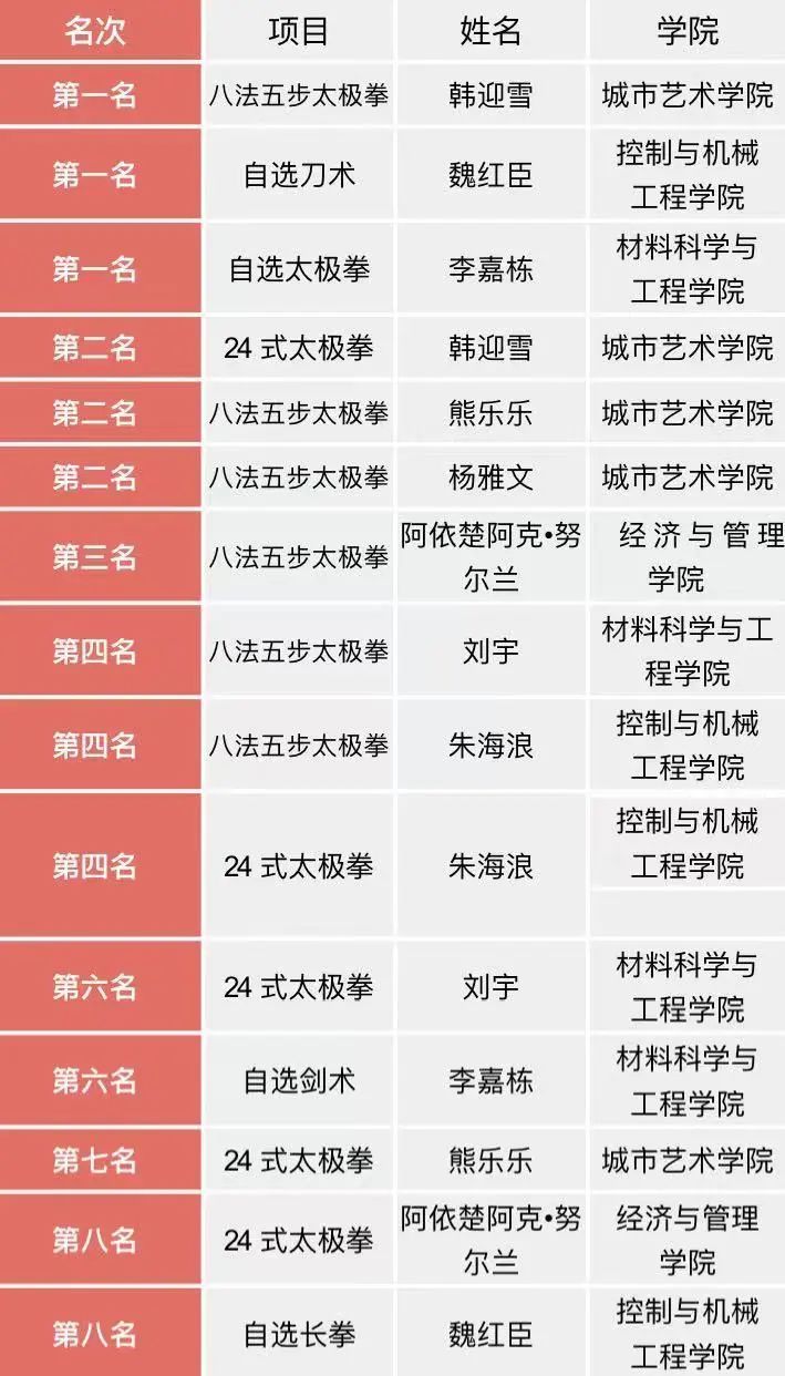 在紧张激烈的角逐中,学校大学生运动员展现了出色的竞技水平和坚韧不拔的精神风貌。他们共参与了16个单项比赛,并成功斩获了15项奖项,其中包括第一名3项、第二名3项、第三名1项、第四名3项、第六名2项、第七名1项以及第八名2项。这一系列优异的成绩不仅体现了学生们的个人实力和团队协作精神,也充分展示了365英国在武术运动领域的深厚底蕴和卓越成就。