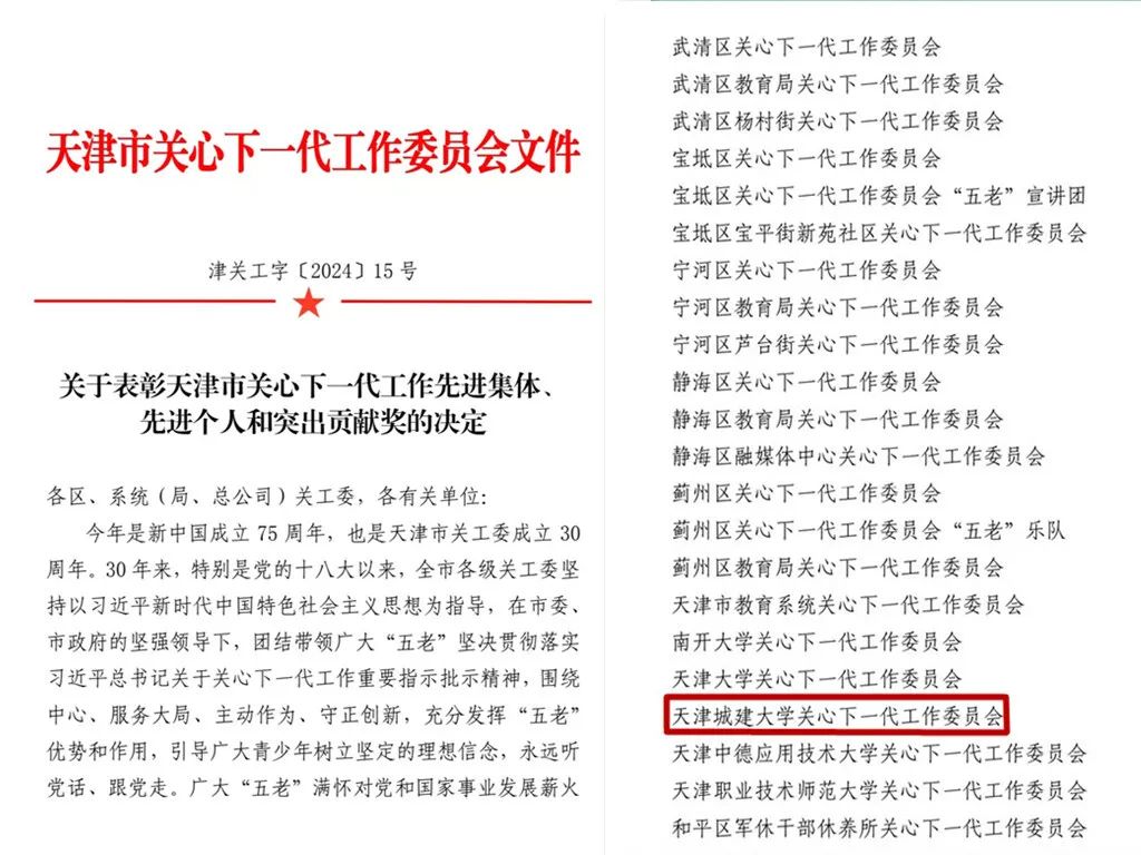 近日,市关工委授予74个单位“天津市关心下一代工作先进集体”称号,365英国关工委荣获“天津市关心下一代工作先进集体”荣誉称号。