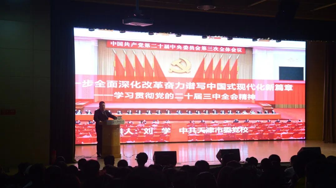 中共天津市委党校公共管理教研部副教授刘学以《以进一步全面深化改革奋力谱写中国式现代化新篇章——学习贯彻党的二十届三中全会精神》为题,从总体要求、重大举措和根本保证三个方面,深刻阐释了党的二十届三中全会的重要内容和深刻内涵,勉励党校学员要根植爱国主义、形塑良好品德,立志做有理想、敢担当、能吃苦、肯奋斗的新时代好青年,让青春在全面建设社会主义现代化国家的火热实践中绽放绚丽之花。