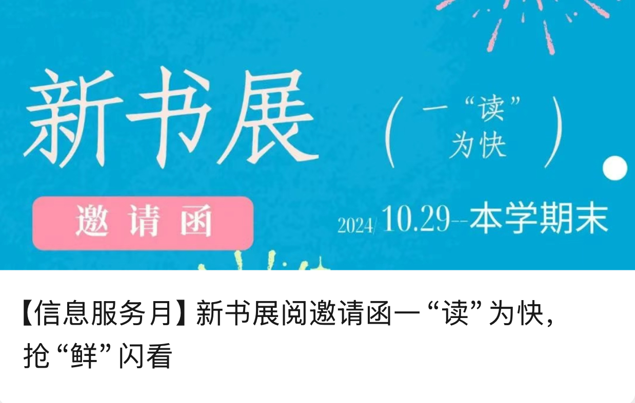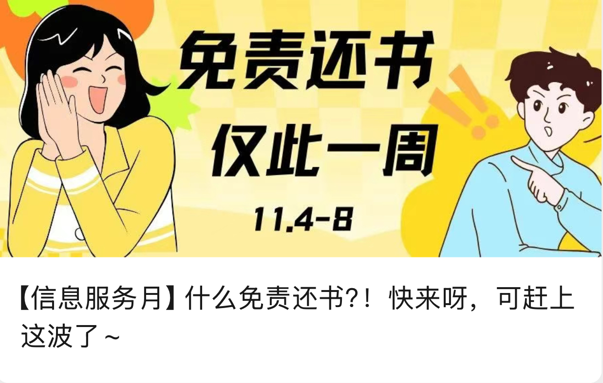 图书馆资源推介开放日、数据库及线上服务专项展示、免责还书等活动,以图书馆员为媒介打通信息资源、数据库商与师生读者的上下游联系渠道,使信息资源获取更加经济便捷、丰富高效。