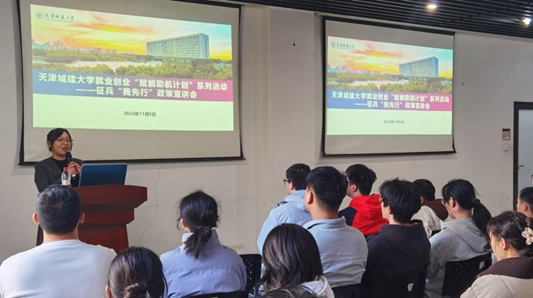 就业政策宣讲会上,学校就业指导中心教师对当前就业形势进行了深入分析,并详细解读了国家就业政策、天津市人才“安居”政策以及保障性租赁住房等“爱津留津”政策。同时,针对就业手续办理、档案管理等常见问题进行了一一解答,为同学们顺利就业提供了有力支持。