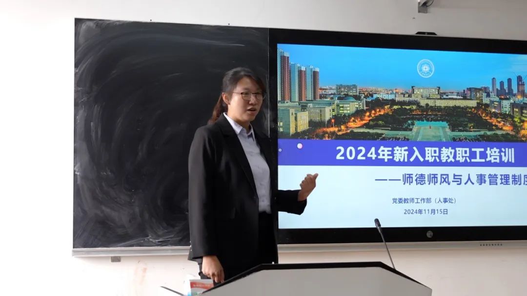 近日,学校举办2024年新入职教职工培训班结业仪式,校党委常委、副校长杨静出席,全体新入职教职工参加会议。