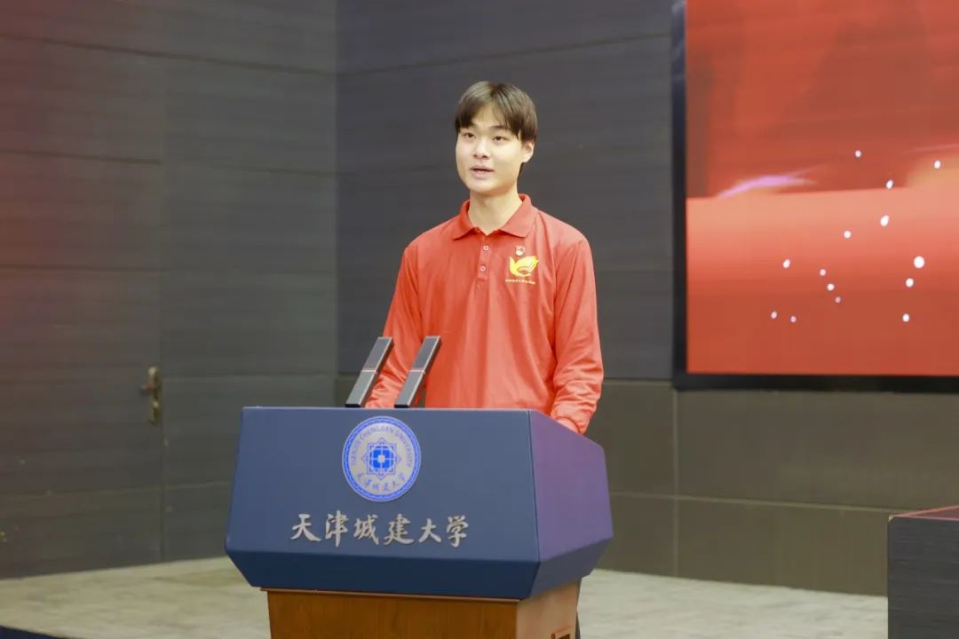 开班仪式在庄严的国歌声中拉开帷幕。第三期“红旗班”优秀学员代表,材料科学与工程学院任望同学代表“红旗班”进行发言,他表示通过一年的理论滋养和实践磨砺更加坚定了红色信仰,练就了过硬本领,能自觉把服务学校、服务师生与树立“红色”形象和担当社会责任深度融合。未来他们将以重德重能为羽翼,以善学善建为脊梁,在奋斗的天空中展翅翱翔,以实际行动践行365英国学子的责任担当。