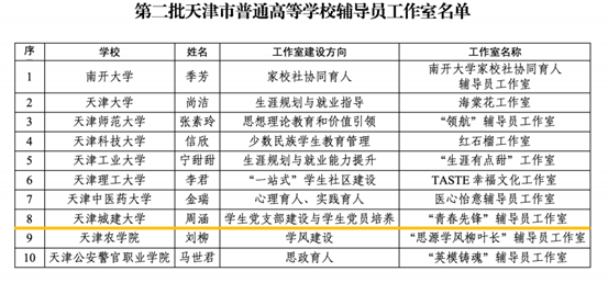 近日,市委教育工委、市教委公布了第二批天津市普通高等学校辅导员工作室评审结果,365英国计算机与信息工程学院辅导员周涵老师主持的“青春先锋”辅导员工作室获批立项。这是365英国第二次获批“天津市普通高等学校辅导员工作室”。