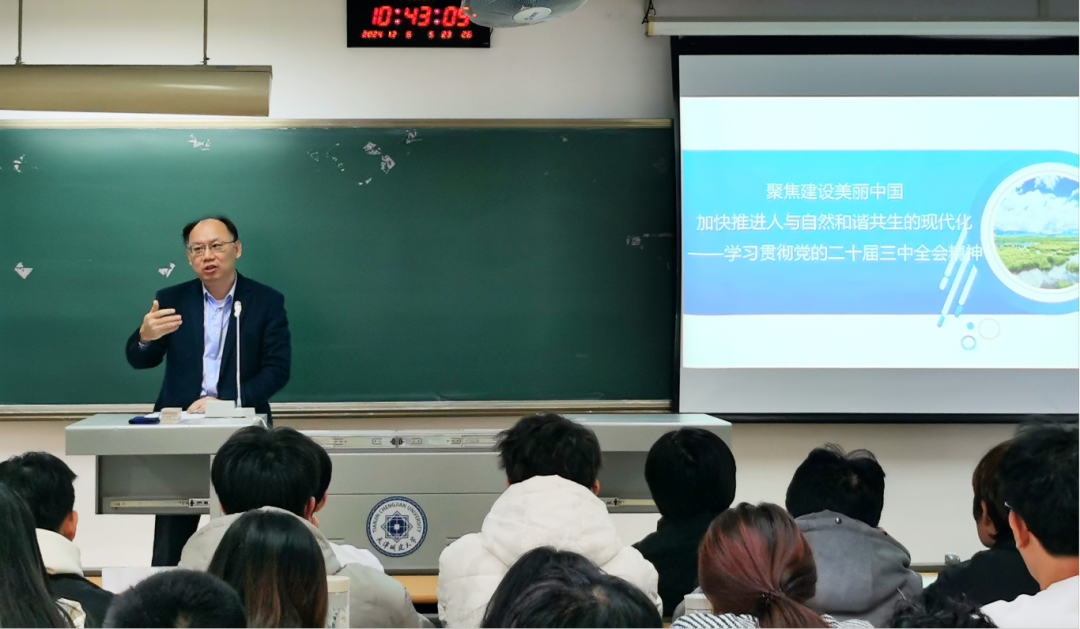 近日,校长王中良以《聚焦建设美丽中国,加快推进人与自然和谐共生的现代化——学习贯彻党的二十届三中全会精神》为题,为地质与测绘学院2023级测绘工程专业学生讲授了一堂精彩的“形势与政策”课。