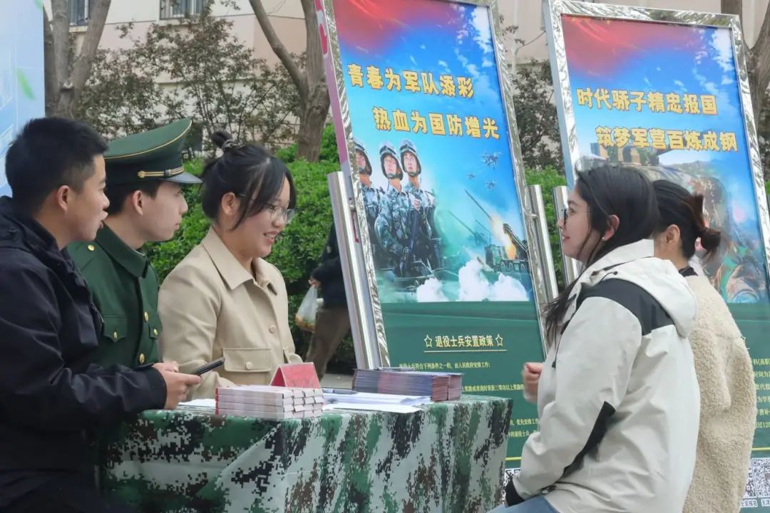 学校成立征兵工作领导小组,挂牌征兵工作站,形成校领导抓总,征兵工作站全程负责,院系主动参与,相关部门积极配合的工作格局。招生季,在4000余名新生入伍通知书中放入征兵宣传页,做到征兵政策人人知晓;毕业季,将征兵宣传融入毕业生招聘会、宣讲会和双选会,有效提高毕业生征集比例;征兵季,建立“绿色飞扬”征兵咨询群,“点对点”解答学生在报名应征、大学生优惠政策、军属优抚待遇等方面的疑难困惑。