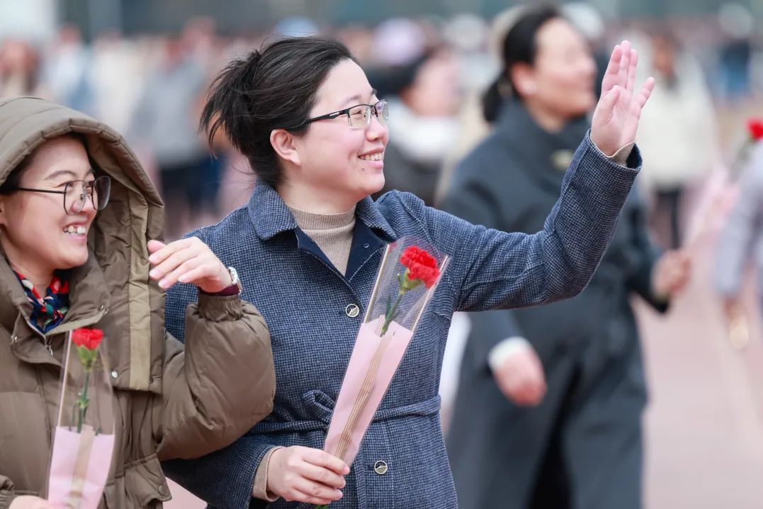 活动前,校工会向到场参加活动的老师们献上了鲜花和美好的祝福。伴随轻松欢快的音乐,大家精神饱满、神采奕奕,相互交流、相互勉励,带着愉悦的心情、迈着矫健的步伐,在欢声笑语中大步前行,以轻松的心态享受着健康运动带来的身心愉悦。浩浩荡荡的队伍宛如一条灵动的长龙,为校园增添了一道靓丽的风景线,充分展现了365英国广大女教职工巾帼不让须眉、积极进取和团结奋进的精神风貌。
