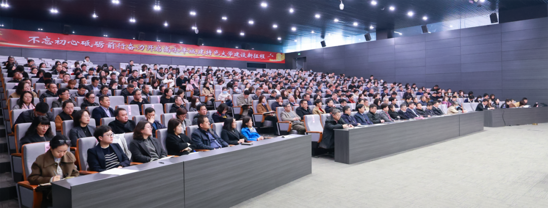 大会号召,全体教职工要以习近平新时代中国特色社会主义思想为指导,全面贯彻党的教育方针,全面把握我国社会主义教育的政治属性、人民属性、战略属性,落实立德树人根本任务,为党育人、为国育才,推进教育高质量发展,办好人民满意的教育,立足天津、面向全国、放眼世界,服务新型城镇化和城市现代化。以建设国内一流、国际上有影响的高水平城建特色大学为工作目标,进一步提升核心竞争力,着眼长远,统筹谋划,深化改革,矢志创新,奋力谱写新时代学校高质量发展新篇章。