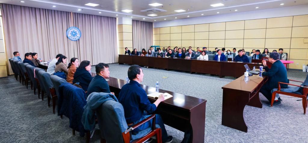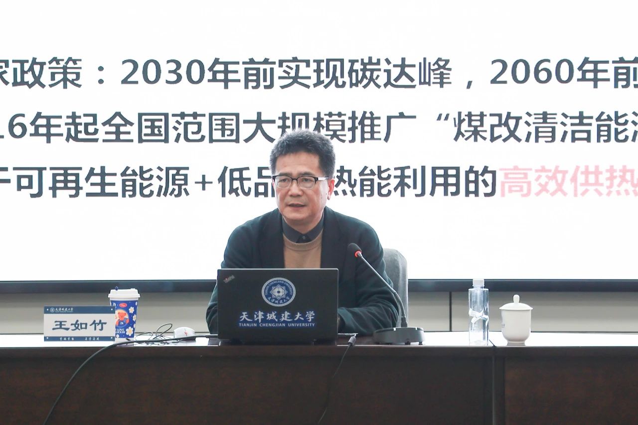王如竹教授作“‘热泵+储热’助力碳中和能源重构”主题报告。会议由能源与安全工程学院院长杨斌主持,学院全体教师、研究生代表参加会议。