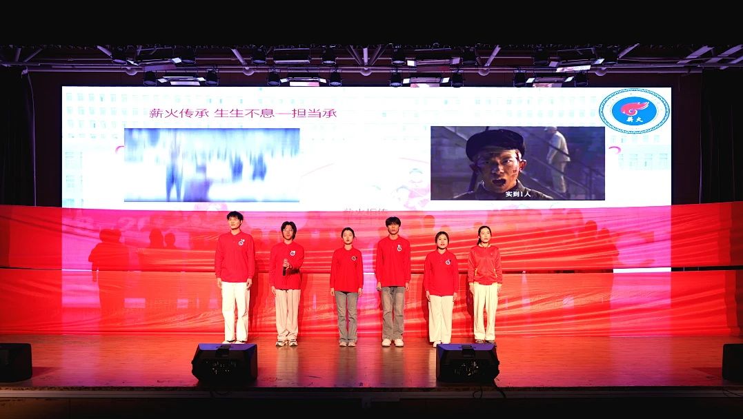 第六期薪火班优秀学员马思政、冷梦冉、王嘉旭、邢赵微,第七期薪火班学员代表卢若冰、姚鸣哲带来主题演讲《青春如炬照征程,薪火永续写担当》。