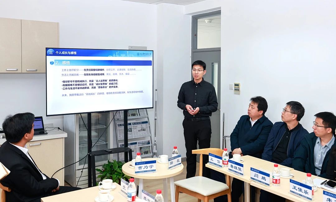 在经验分享环节,经济与管理学院踪程老师作为津冀互派高校优秀年轻干部第二批实践锻炼教师,分享了在燕山大学文法学院(公共管理学院)挂职的经历。他详细讲述了在参与本科教学审核评估、学生管理等工作过程中,如何以校际合作为纽带,推动区域教育资源共享和科技成果转化,为跨校协作提供了可借鉴的实践样本。
