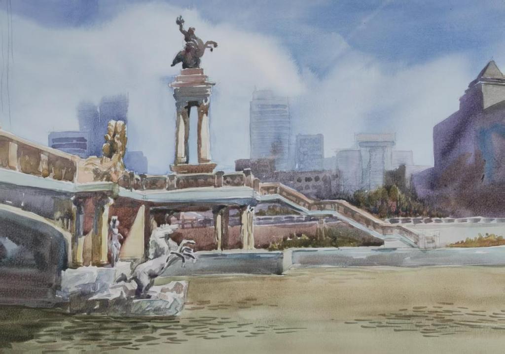 毕留举教授以天津的母亲河——海河为主线,创作了外环线以内19座海河桥作品,还针对海河桥两岸附近的建筑创作了20多幅作品,作品表现了海河桥及两岸城市风光、展现城市独特魅力的作品,探寻天津这座“中西合璧,南北交融” 城市的发展故事,展现天津经历“因河而兴,因桥而盛”的城市发展脉搏和历史文化底蕴,激发大众热爱天津、建设天津的热情。