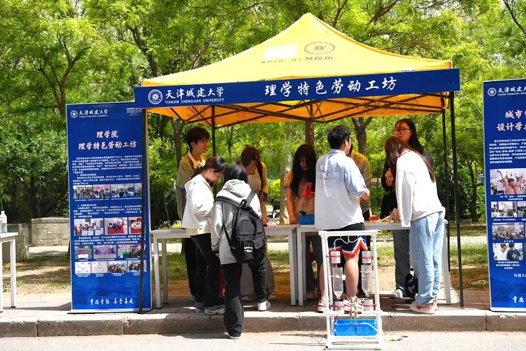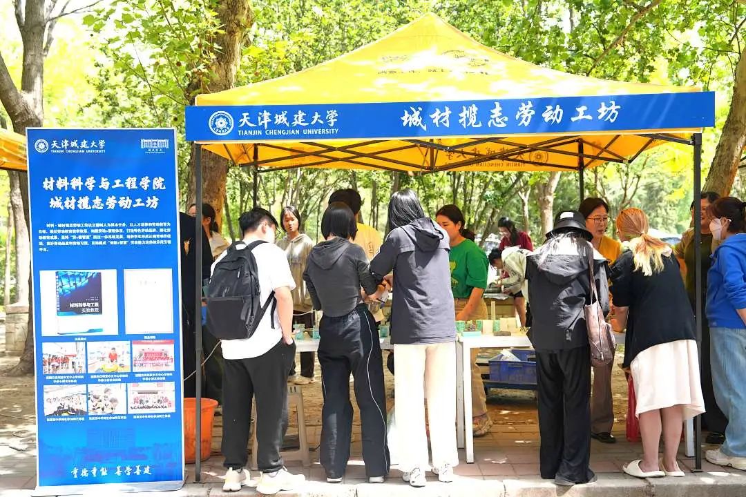 活动现场,12个校级劳动教育工坊联袂呈现一道具有城建特色、更加靓丽的风景线,将专业实践与劳动教育深度融合。