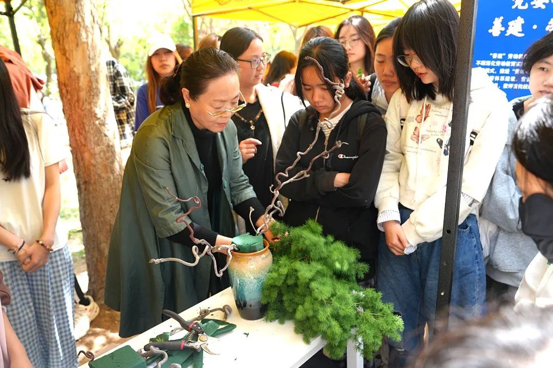建筑学院卓·築劳动工坊开展“匠心绽放·花艺青春”一非遗插花技艺校园实践展,师生现场创作花艺作品,融合劳动技能与美学教育,展现青春创意。