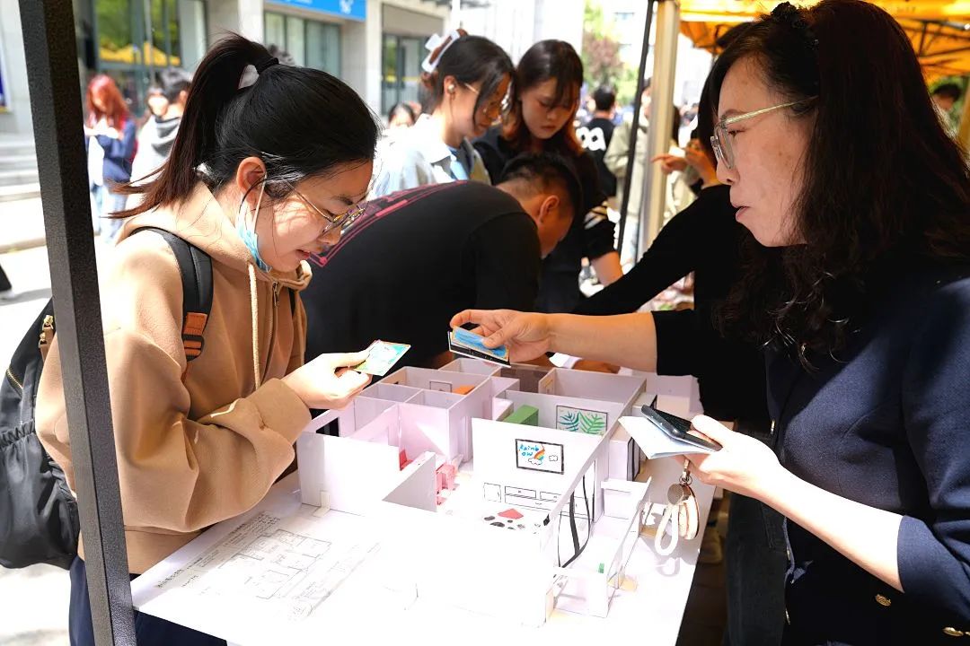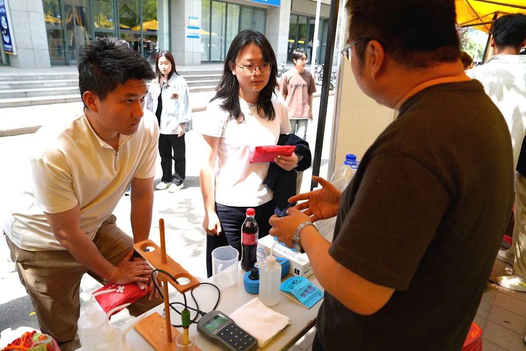 在沉浸式体验区,学生动手制作竹材模型、水果电池,操控工程机器人,在“做中学”深化专业认知;在成果展示区,展出近两年省级以上竞赛获奖作品30余件,物理演示仪器、机器人创新设计等彰显实践育人成效;在创意激励区,转盘抽奖活动发放洗衣券、空调券等实用福利600余份,以“小奖励”激发“大热情”;在五育打卡区,“德润心田”“劳筑幸福”等主题打卡地吸引师生合影超百次,劳动之美刷屏校园朋友圈。
