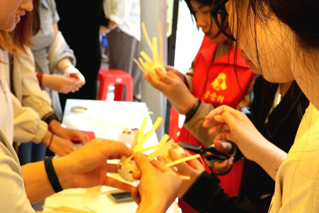土木工程学院土木·思远劳动工坊现场进行竹材模型制作,展示近两年思远劳动工坊教学、竞赛优秀成果。