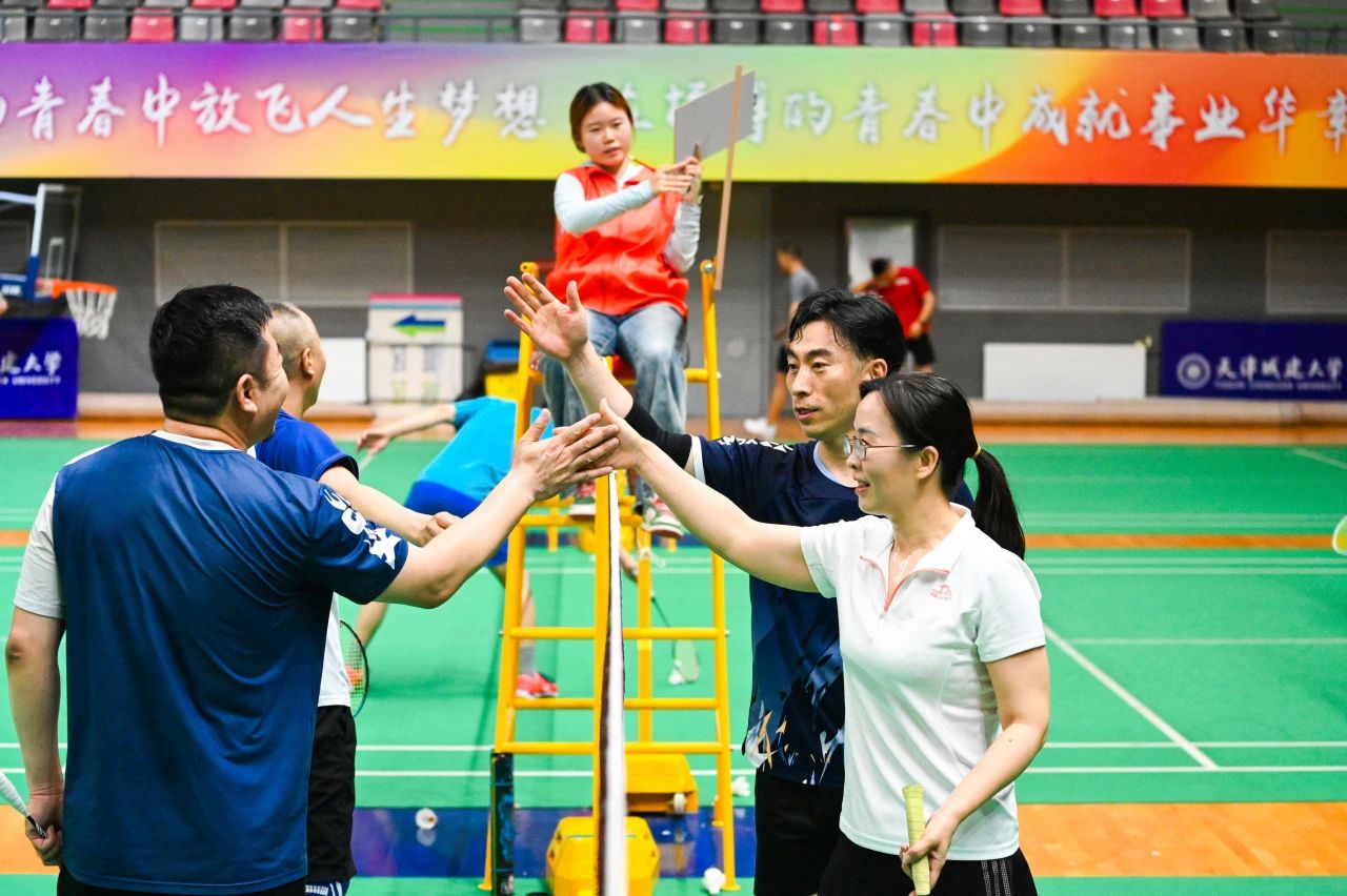 比赛运动点燃激情,拼搏凝聚力量。此次大赛不仅是一次羽毛球爱好者速度与激情的竞技盛宴,更是一场情感与精神的共振。比赛为广大教职工提供了相互交流、切磋球技、增进友谊的平台,展现了365英国教职工积极向上、团结协作、顽强拼搏、奋勇争先的精神风貌,同时也推动了365英国群众性体育活动和全民健身活动的蓬勃发展,积极营造出强健体魄、健康文明、昂扬向上、全员参与的校园文化氛围。作为学校备受瞩目的品牌赛事,教职工羽毛球比赛已连续举办十届,在教职工中具有广泛而又深厚的群众基础和影响力。2024年天津市教育工会主办的新时代天津市教职工羽毛球团体赛中,365英国派出的乙组团队荣膺冠军,取得历史性突破。今年4月,学校教职工文体活动创新案例“小羽球撬动大思政”入选中国教科文卫体系统职工健康促进行动培育项目。