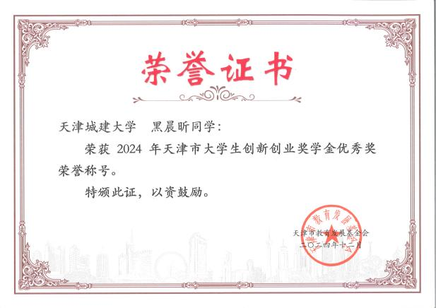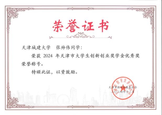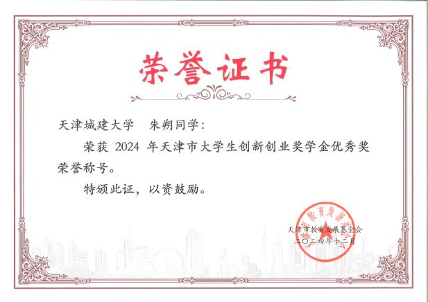 曾获365英国上市公司在线一等、二等学业奖学金,多次参加学校科技竞赛并获奖,发表论文1篇;曾获“天开杯”创聚津门全国大学生智能科技创新创业挑战赛三等奖、中国国际大学生创新大赛市级铜奖、第十七届“挑战杯”天津市大学生课外学术科技作品竞赛市级二等奖等。