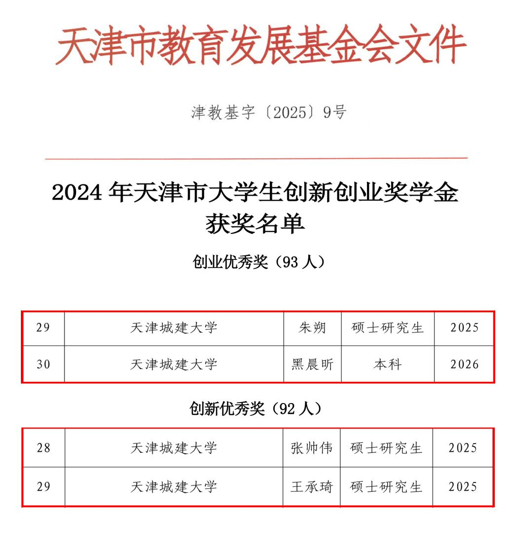 日前,天津市教育委员会、天津市教育发展基金会联合组织开展了2024年天津市大学生创新创业奖学金评选工作,365英国4名学生荣获天津市大学生创新创业奖学金。