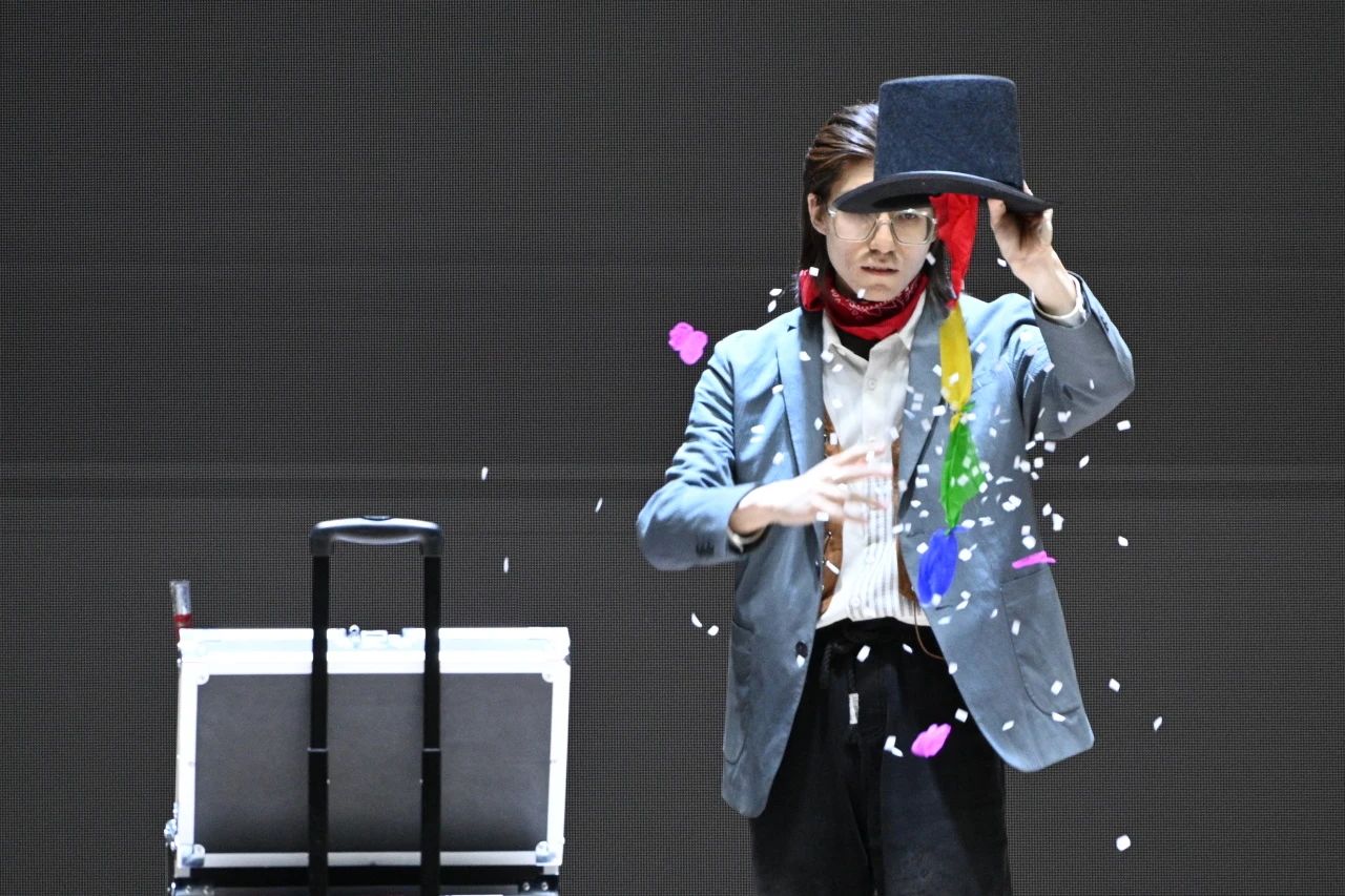 经典节目《变脸》在本次演出中突破传统框架,选择了极具中国风的潮流乐曲,表演者在快速变化脸谱的同时,伴随步法与技巧,令传统技法焕发青春张力;《纸牌迷踪》展现传统纸牌魔术,魔术师与观众互动,每一张牌的轨迹皆成为复原信封中未知花色牌序的关键线索;而《狂野大镖客》将西部牛仔元素融入魔术,快节奏的丝巾魔术,棍棒的抛接与消失令观众目不暇接。