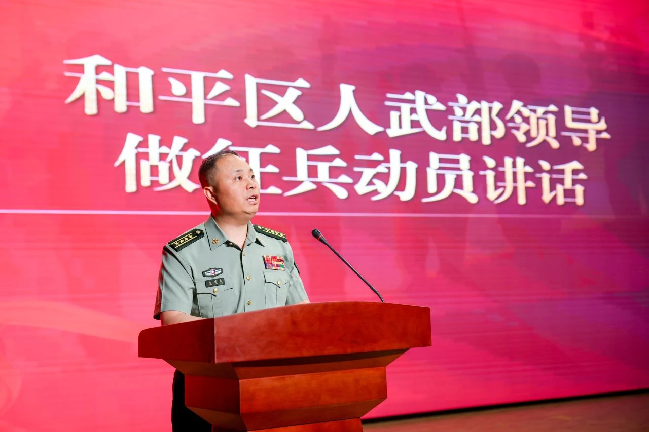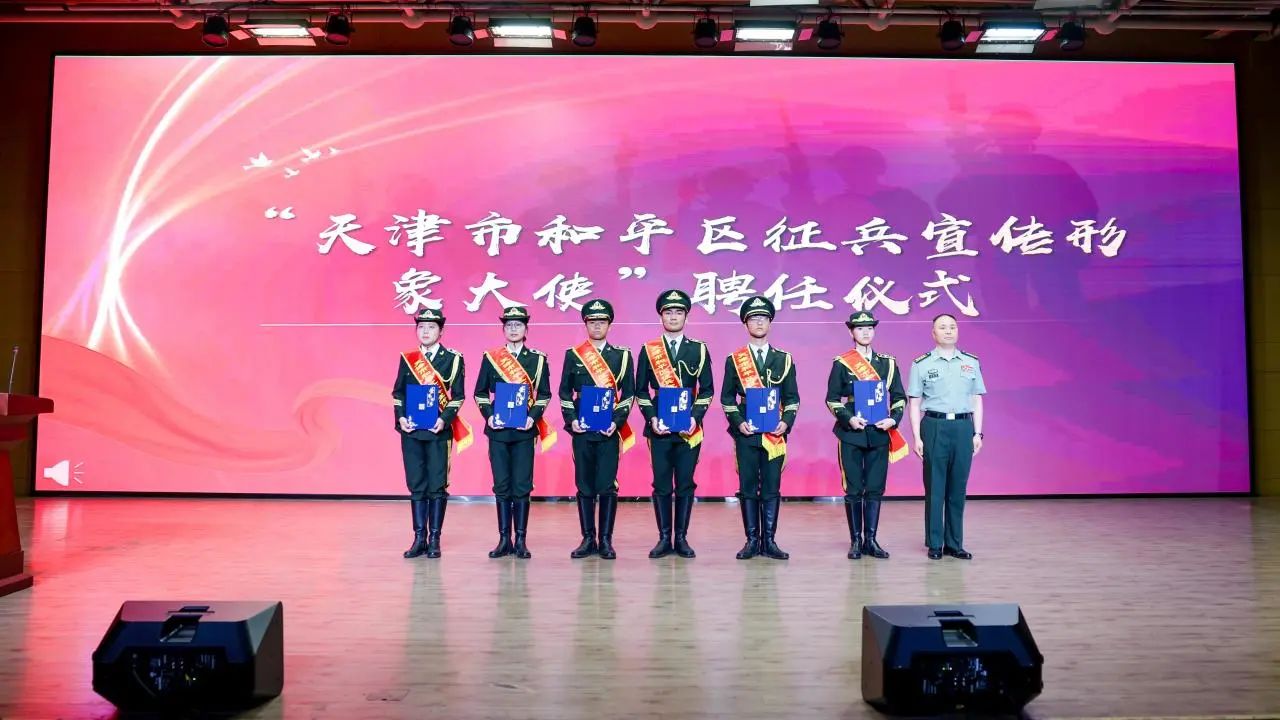在“天津市和平区征兵宣传形象大使”聘任仪式中,仝建勇向国旗护卫队和退役士兵代表颁发聘书。