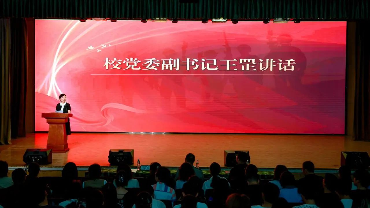 大会在庄严的国歌声中拉开帷幕,全体人员奏唱中华人民共和国国歌,激昂的旋律点燃了现场师生的爱国热情。