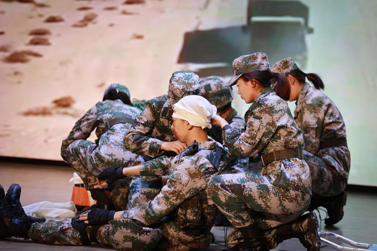 《当那一天来临》大合唱气势恢宏,唱出了青年学子对祖国的忠诚和投身军营的决心。