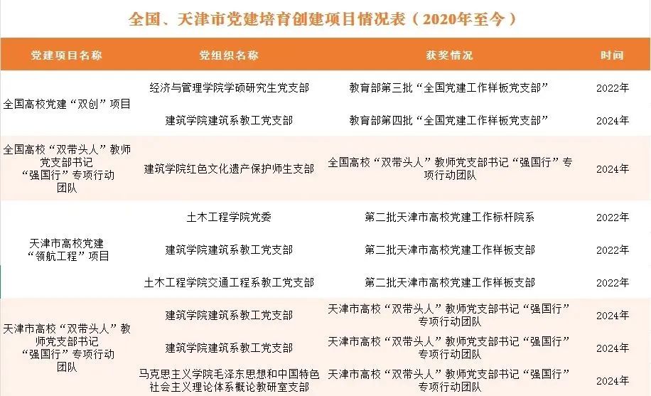 2020年至今学校获批全国、天津市党建培育创建项目情况
