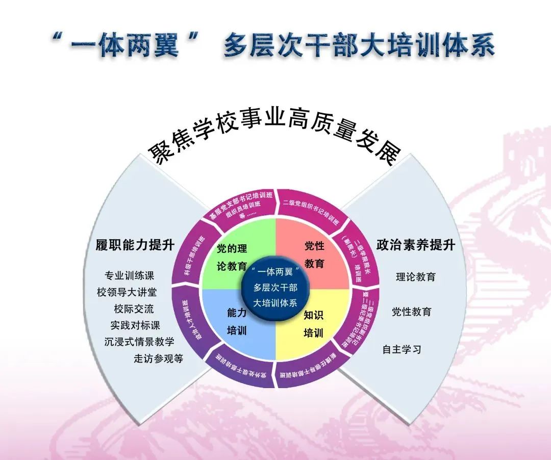 紧扣新时代好干部标准,统筹推进干部“选育管用”全链条工作,构建起更加科学规范、系统完备的干部工作体系,干部队伍结构持续优化,专业化水平不断提升,各级干部执行力、战斗力显著增强,干事创业精气神得到有效激发。干部选拔任用工作民主评议结果始终保持高位,名列市属高校前茅。着眼后继有人,多措并举实施年轻干部培养“青苗计划”。聚焦事业发展,优化升级“一体两翼”干部大培训体系,五年来,精准、多样、有效开展干部培训1600多学时,实现干部政治素养与履职能力的双提升。
