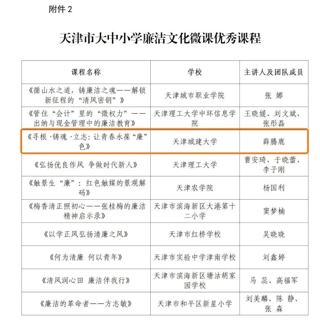 马克思主义学院教师薛腾鹿主讲的廉洁网络微课《寻根·铸魂·立志:让青春永葆“廉”色》获评天津市大中小学廉洁文化微课优秀课程
