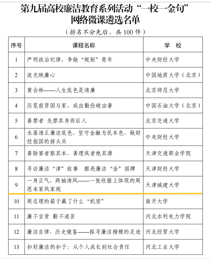 马克思主义学院教师张紫驰主讲的廉洁网络微课《一身正气,两袖清风——一张收据上体现的周恩来家风家规》入选教育部第九届高校廉洁教育系列活动“一校一金句”网络微课遴选名单