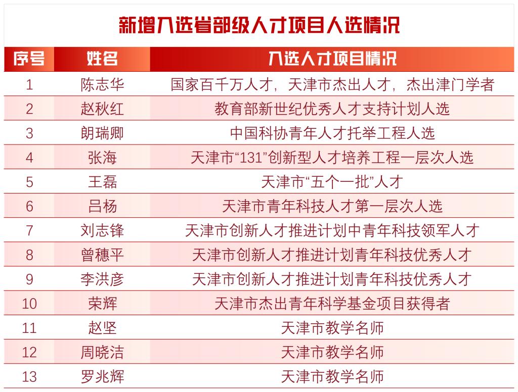 成立党委教师工作委员会,健全师德师风建设工作责任制,建立教师思想政治和师德师风考察制度。教育家精神得到大力弘扬,学校涌现出一批爱岗敬业大先生,首次获评全国五一劳动奖章1人,获评天津市劳动模范1人、优秀教师2人、“三八”红旗手1人、“三八”红旗集体1个、十佳辅导员2人、优秀辅导员6人,获评全国辅导员素质能力提升骨干训练营优秀风采奖1项,获批市级辅导员工作室2个。学校优秀教师事迹被多家主流媒体报道,王海良教授深耕修路建桥实践前沿和教学一线的事迹被《人民日报》刊登。