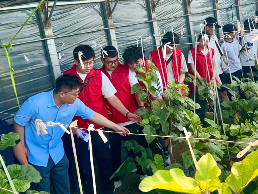 理论学习后,师生们走进第六埠村智慧农业大棚。在技术人员指导下,师生仔细观察茄子、黄瓜等作物的生长状态,实地了解智慧温室的种植管理模式。随后深入温室能源控制室,重点参观了生物质采暖炉,将专业知识与农业生产场景切实结合起来,加深了对专业在实际应用中的理解。学生们分组轮换,积极参与能源设备维护、农业劳作等实践任务,在动手操作中深化对专业知识的理解,以实际行动践行劳动担当。