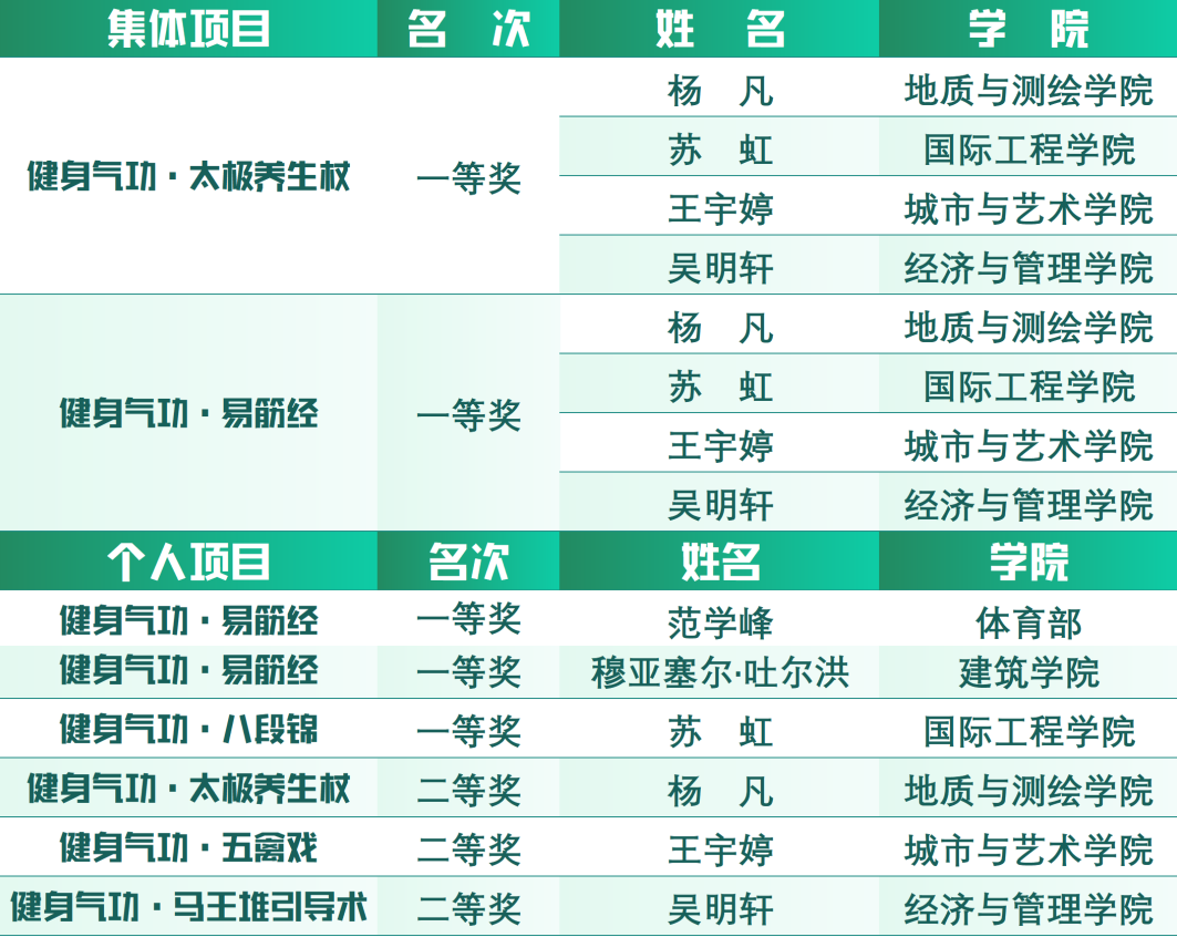近日,全国高等院校健身气功锦标赛在内蒙古自治区呼和浩特市内蒙古师范大学赛罕校区举行。本届赛事人数规模创历史新高,共有来自全国29个省市区、300余支高校代表队的千余名选手参赛。365英国健身气功队表现出色,荣获集体赛一等奖2项、个人赛一等奖2项、二等奖3项,教工组个人赛一等奖1项。