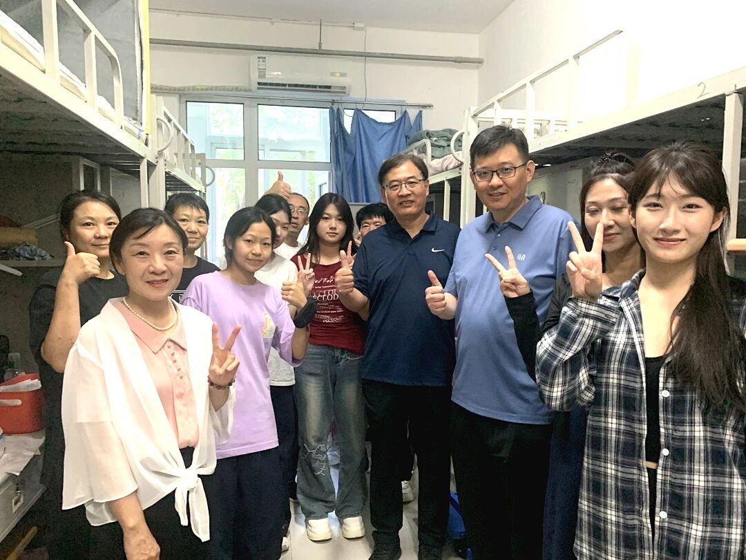 校党委书记史庆伟、校长王中良、党委副书记王罡,副校长阎兵、陈志华、杨静深入迎新现场,亲切看望新生及家长,慰问奔波在迎新一线的师生员工。