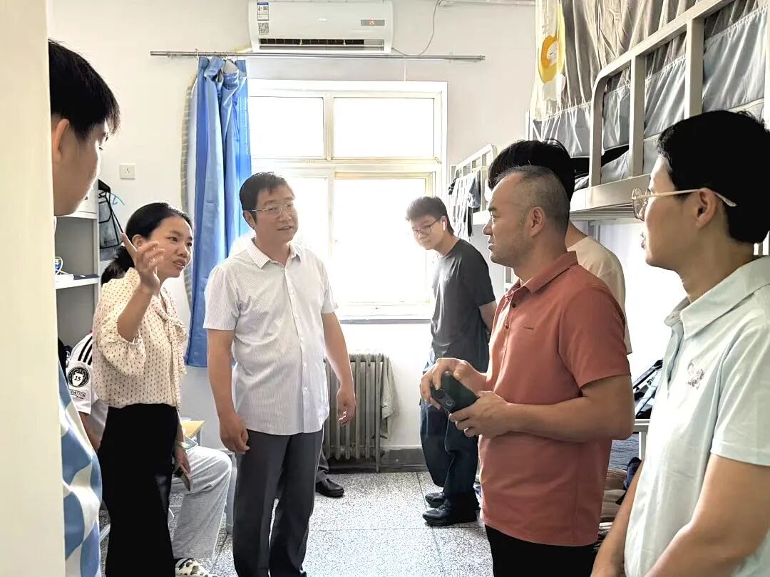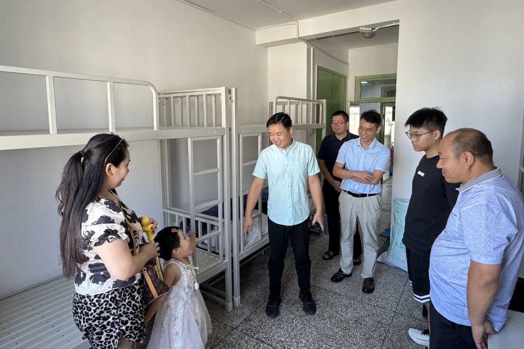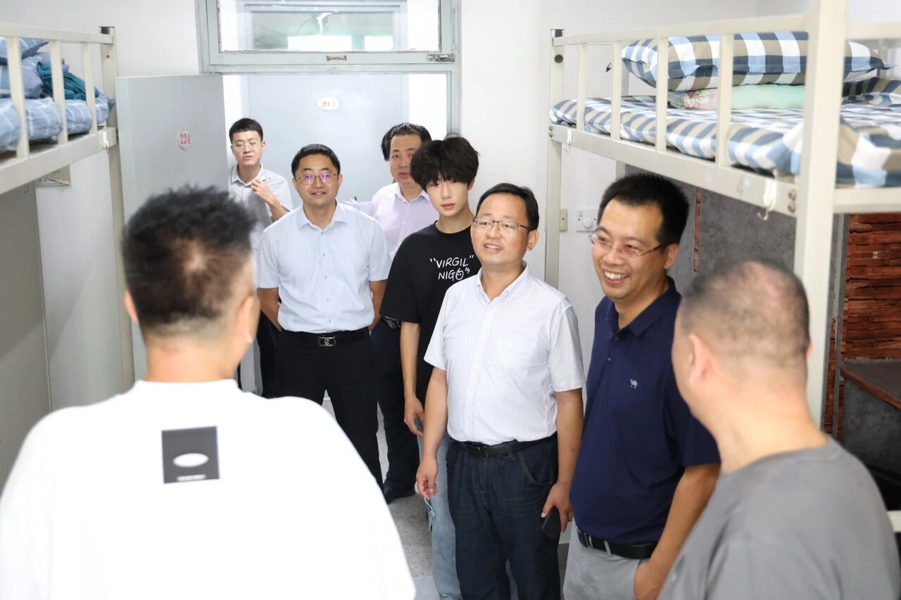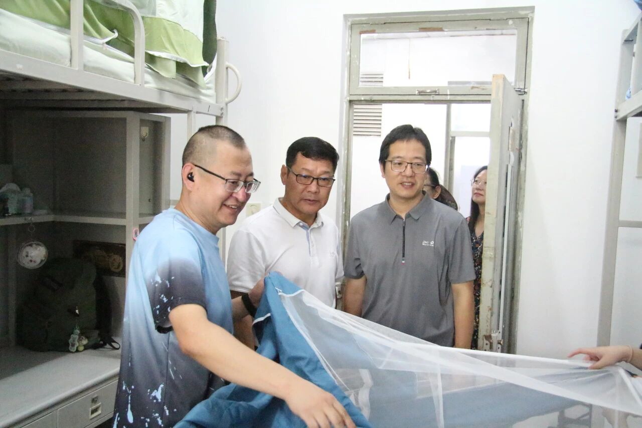 校领导一行先后来到商超售卖点、第二餐厅、第一餐厅、2025级新生宿舍和学院迎新接待点,检查指导迎新工作。在商超售卖点,校领导详细询问各类商品的供应储备与价格情况,叮嘱相关负责人要确保商品供应充足、价格稳定,为新生提供便捷优质的购物服务;在两个餐厅,细致了解窗口菜品、就餐环境及后厨卫生状况,对暑期就餐环境改善、设施设备更新等工作成效给予肯定;在学生公寓区,现场查看了2025级新生宿舍暑假修缮情况,了解宿舍修缮细节和后续维护计划,对如何进一步优化新生“一站式”报到服务体验、深化“一站式”学生社区建设等进行了现场指导。随后,校领导走访了学院迎新点位,检查指导迎新工作,详细了解新生报到注册情况。
