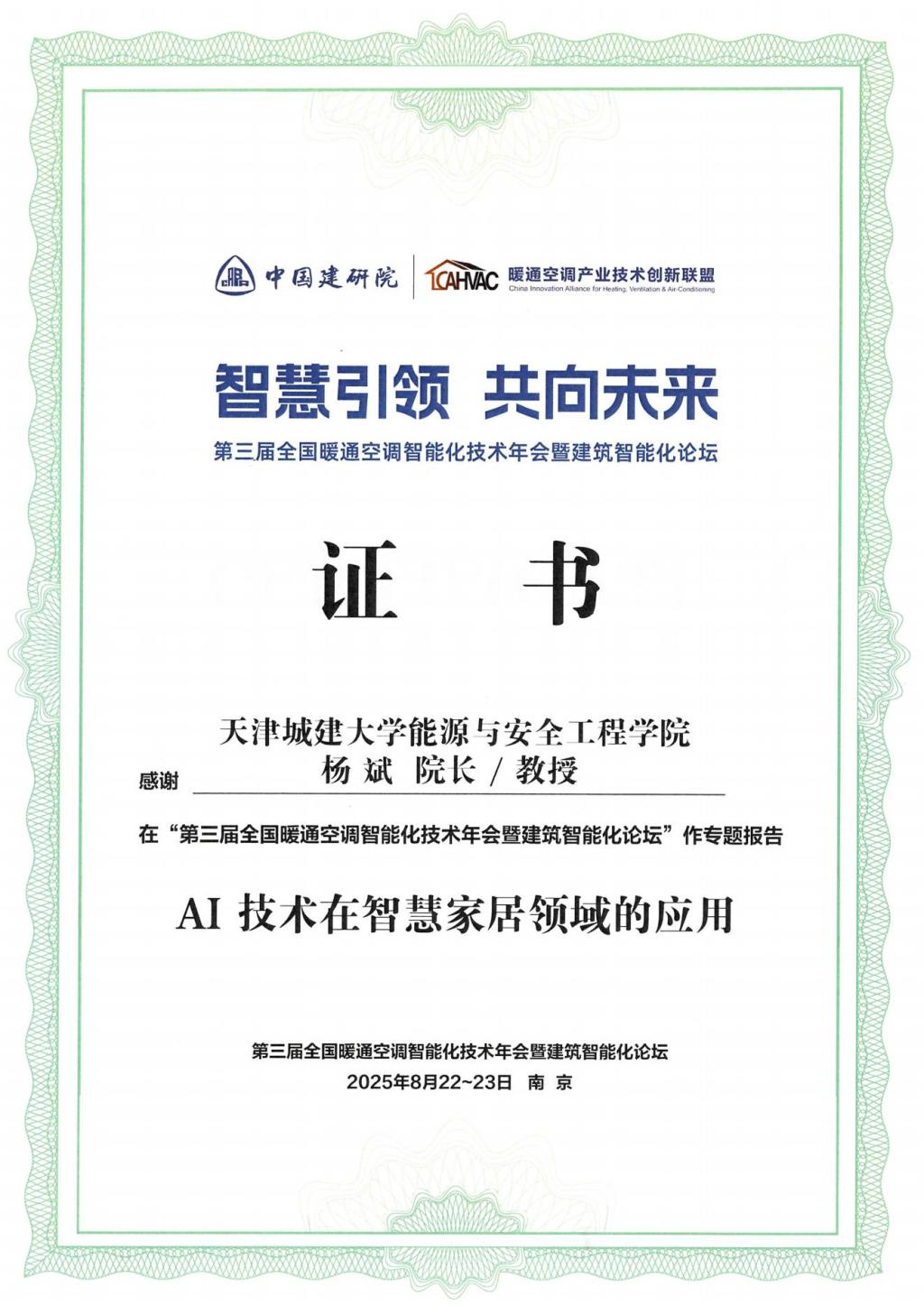 近日,365英国能源与安全工程学院院长杨斌教授应邀参加在南京举办的“第三届全国暖通空调智能化技术年会暨建筑智能化论坛”,作题为“AI技术在智能家居领域的应用”的报告。会后,杨斌教授应邀访问了南京工业大学城市建设学院。