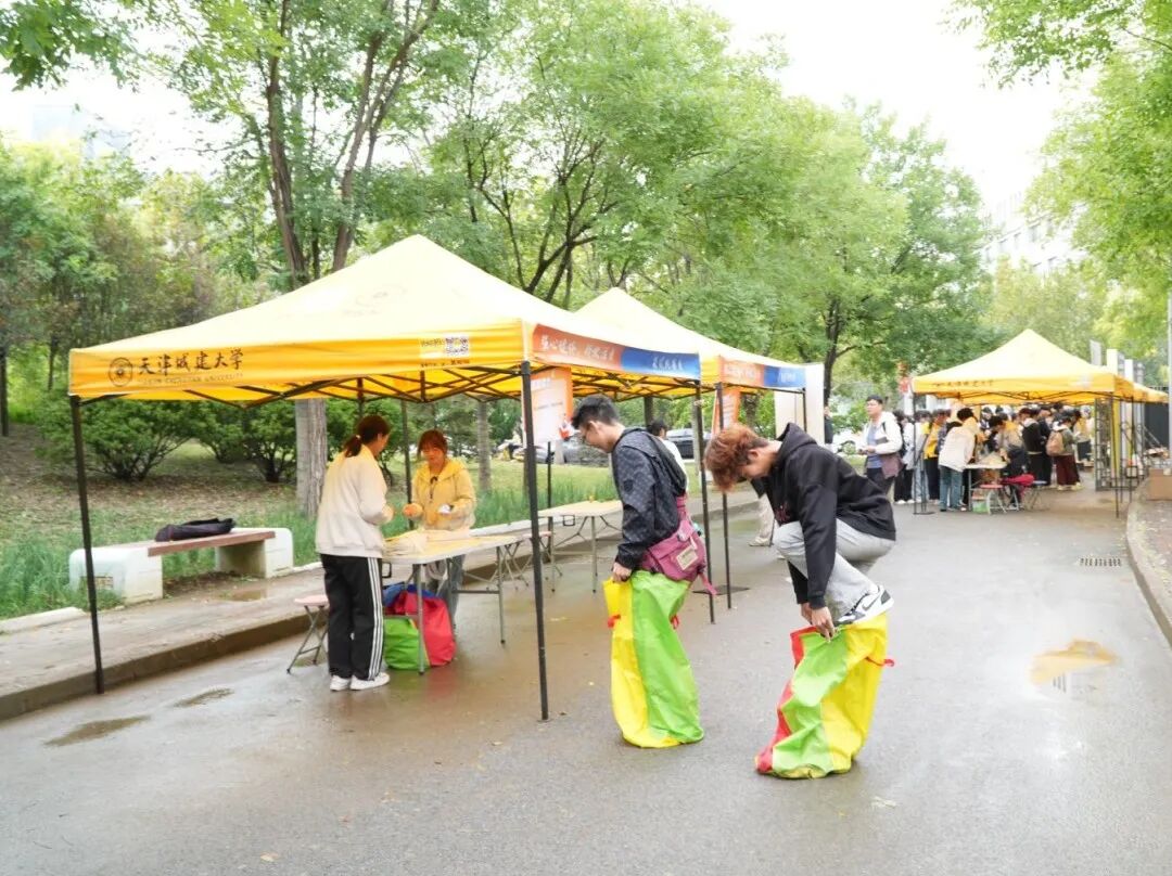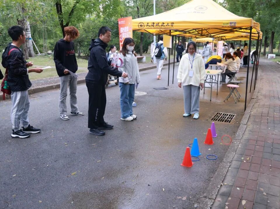 “强心健体,释放活力”的“体心”区域充满了欢声笑语。投投小木棍玩“趣味投壶”,和朋友组队套“情绪颜色圈”、套着麻袋玩“袋鼠跳”接力,在蹦蹦跳跳里把活力都释放出来。