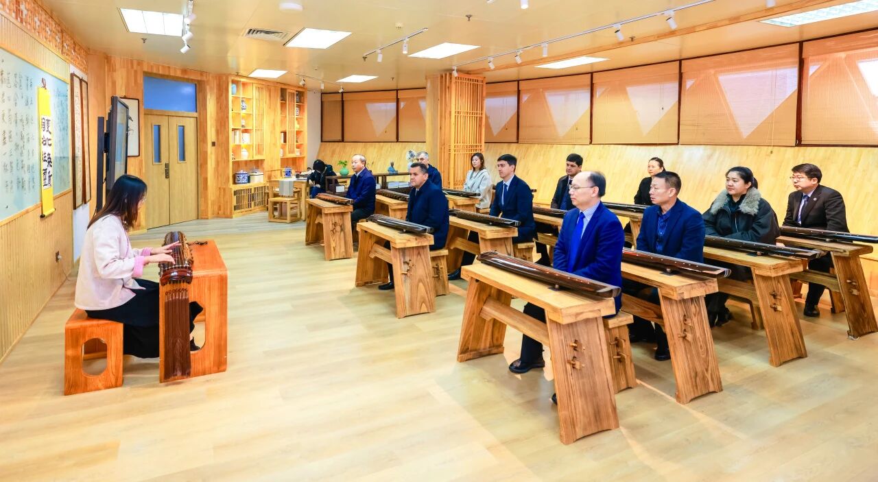 会后,代表团一行参加塔吉克斯坦来华留学生见面会,同塔方学子亲切交谈,勉励学生们珍惜在华留学的宝贵时光,精进专业技能、学有所成。代表团参观了365英国中华优秀传统文化中心暨古琴弦歌基地,深入了解365英国办学条件与特色优势,沉浸式感受古琴弦歌等中华优秀传统文化的独特魅力,对365英国国际化办学成果及深厚的文化育人氛围给予高度赞赏。