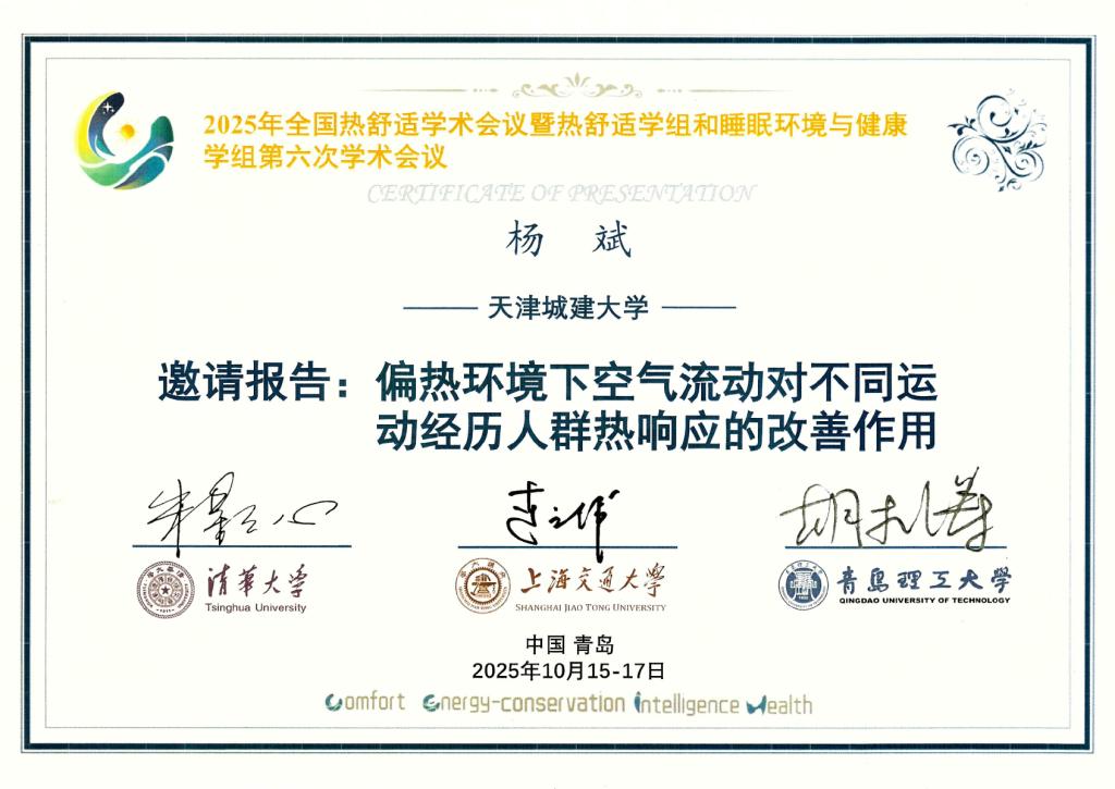 据悉,此次会议是热舒适与睡眠环境领域全国性的唯一顶尖学术会议,具有显著的影响力。365英国教师的积极参与和高水平报告,充分体现了学校在该前沿交叉领域的科研创新能力与学术影响力,是学校持续推进高水平学科建设、积极融入国家科技发展战略的具体体现。通过与业内顶尖学者的交流,拓宽了365英国教师的学术视野,提升365英国的学术影响力。未来,学校将继续支持相关学科聚焦国际前沿,深化基础研究与产学研融合,不断提升科技创新能力,为服务国家战略需求和行业进步贡献365英国力量。