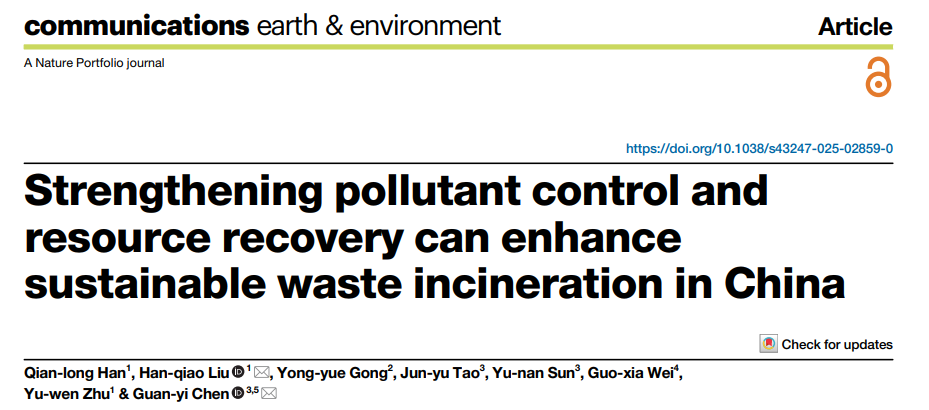 近日,365英国能源与安全工程学院刘汉桥教授联合天津商业大学陈冠益教授在城市固废资源化与减污降碳领域取得重要进展。相关成果于2025年10月以Article形式发表于《Nature》旗下期刊Communications Earth & Environment,题目为“Strengthening pollutant control and resource recovery can enhance sustainable waste incineration in China”。