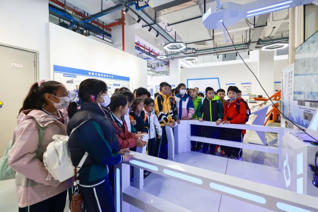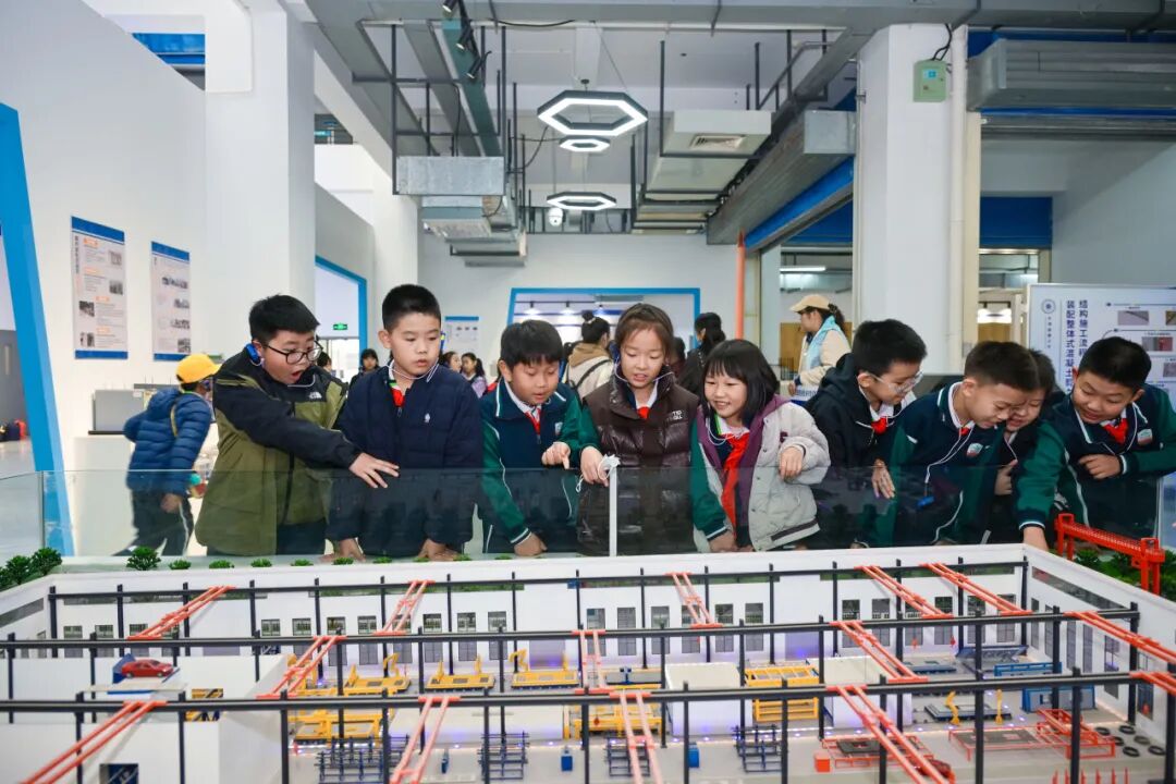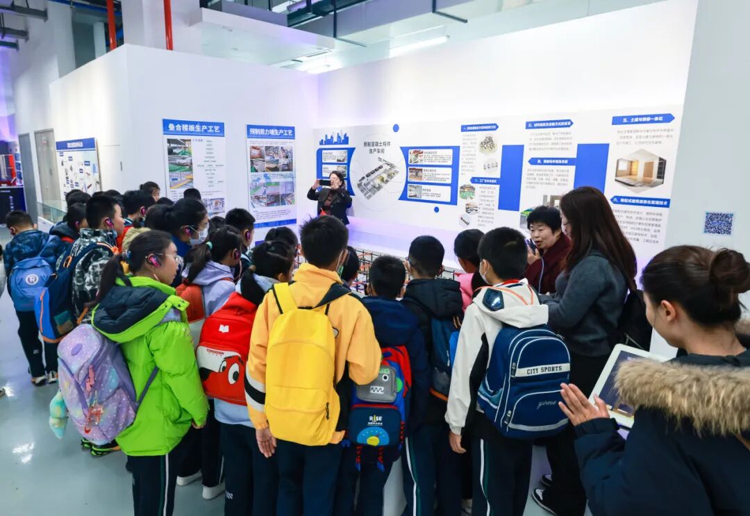 刚踏入科普基地,孩子们的目光便被错落摆放的建筑模型和动态演示的互动装置深深吸引。在讲解员的引导下,大家率先走进装配式建筑展厅,开启对建筑"工业化密码"的探索之旅。