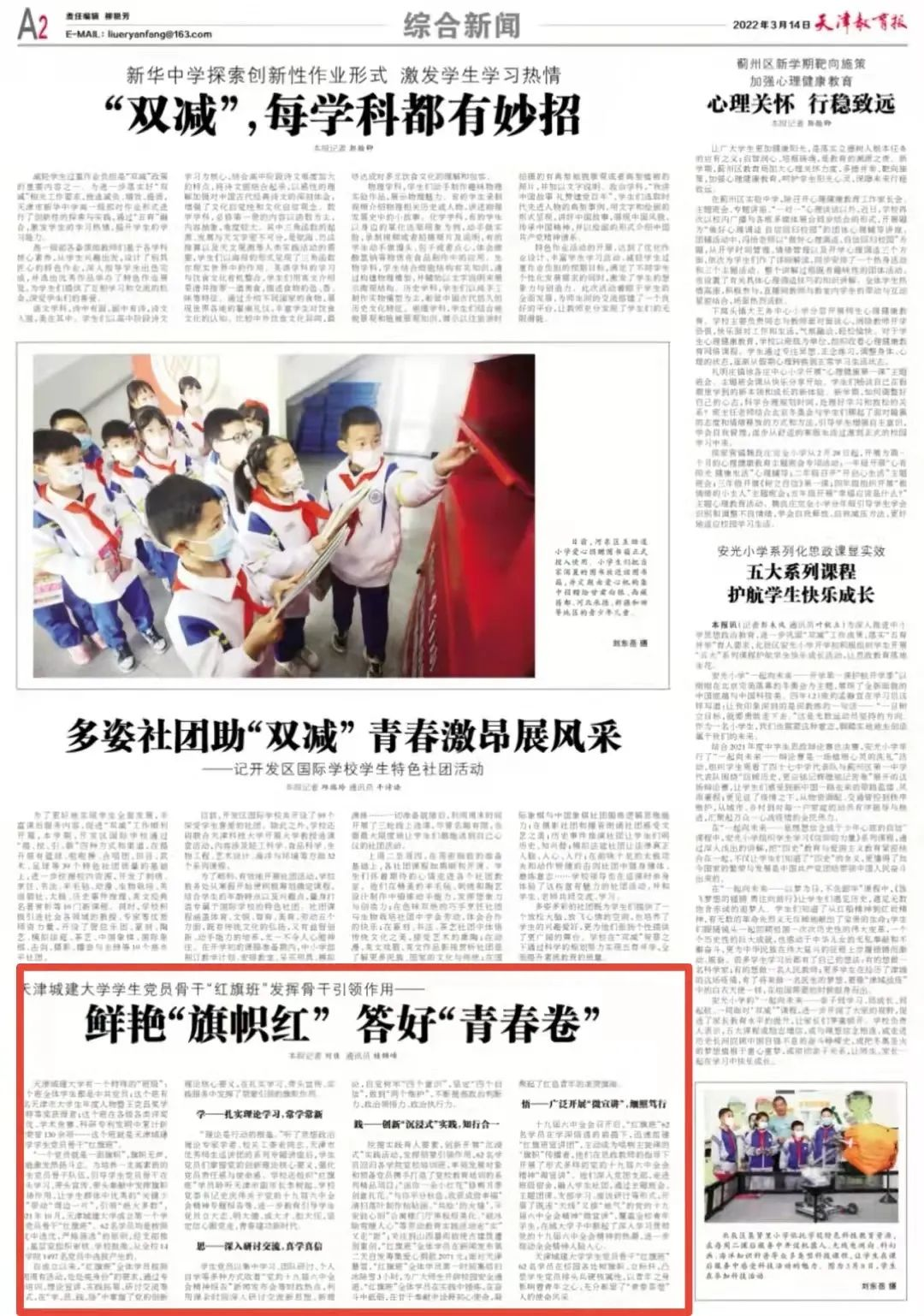 3月14日出版的《天津教育报》对365英国学生党员骨干“红旗班”工作进行报道,具体内容如下。