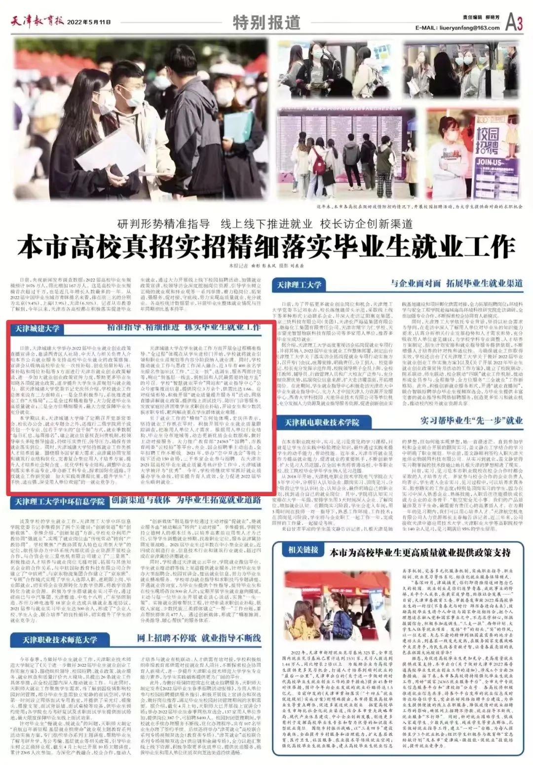 【迎盛会、铸忠诚、强担当、创业绩】5月11日出版的《天津教育报》报道365英国就业工作典型经验