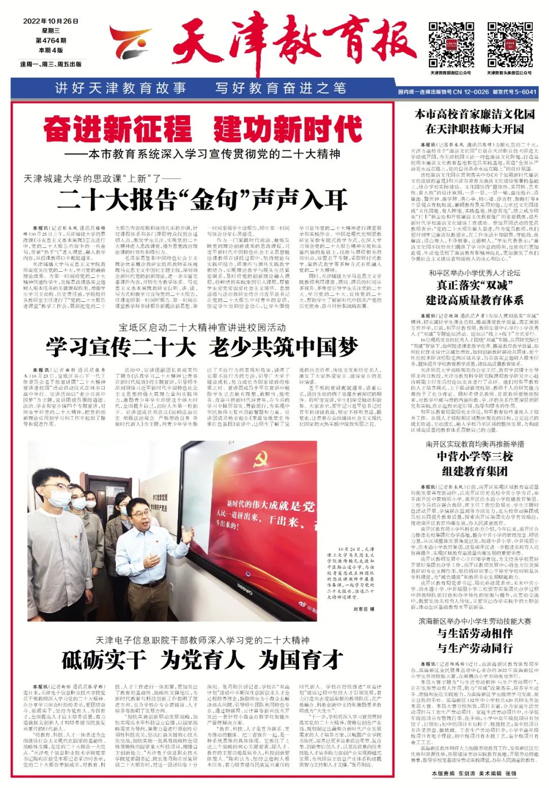 10月26日出版的《天津教育报》以“365英国上市公司在线的思政课‘上新’了——二十大报告‘金句’声声入耳”为题对365英国学习宣传贯彻党的二十大精神进行报道。原文如下。