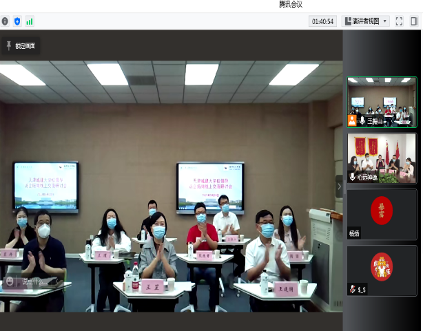 校党委副书记王罡与天津瑞唐广告传媒有限公司总经理王永靖、副总经理杨晨,天津广康达网络科技有限公司执行总裁任向东及伏羲姚鼎全民健康产业集团负责人进行线上交流研讨。王罡对三家企业长期以来对学校毕业生就业工作的支持、信任表示感谢,希望城市艺术学院在积极主动思考如何进一步加强校企合作,多为企业输送优秀人才的同时,根据行业需求及企业反馈进一步完善学院人才培养方案,真正实现校企合作互利共赢。城市艺术学院党委书记王建国,院长张小开,党委副书记陈文科,副院长殷陈君、王璞等陪同调研。