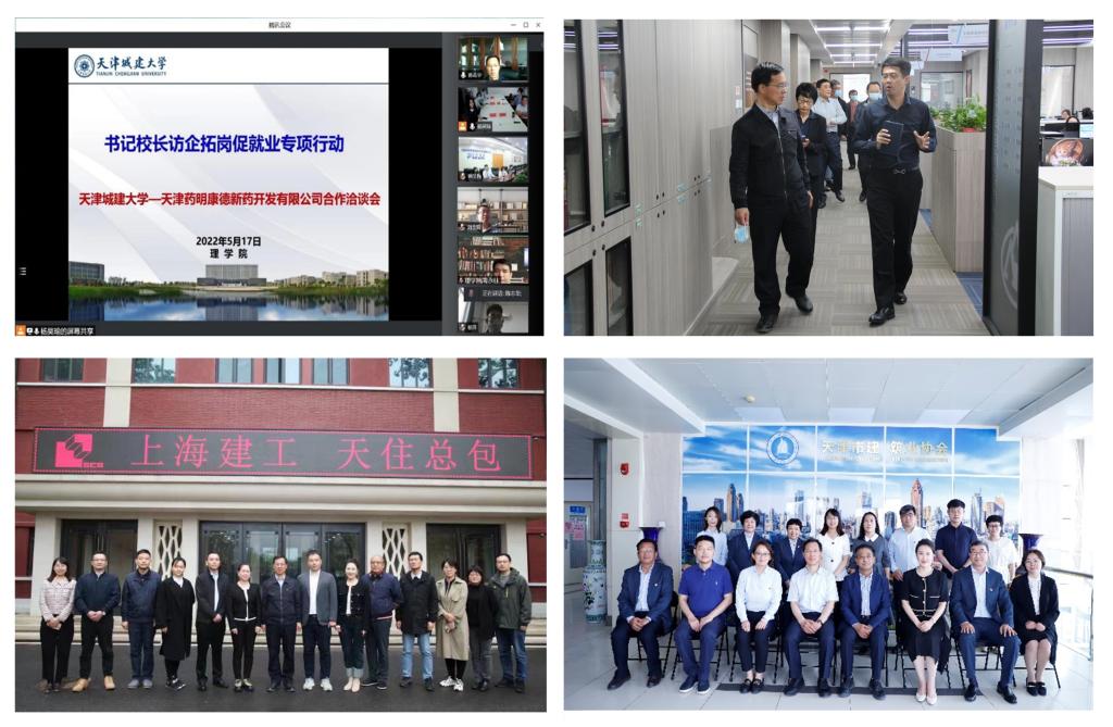 副校长陈志华带队分别前往天津法莫西医药科技有限公司、天友建筑设计股份有限公司、天津市森宇建筑技术法律咨询集团、天津市中创蓝德建设运营风控中心、天津住宅集团建设工程总承包有限公司、天津市建筑业协会、天津中发控股集团有限公司走访调研,与法莫西医药公司董事长田东奎,天友建筑设计公司董事长宋令涛,副总经理兼电气专业总工韩帅,天津市中创蓝德建设运营风控中心主任、森宇集团总裁徐钢、总经理何朝辉,天津住宅集团总经理李胜英、副总经理焦林泉,建筑业协会会长黑金山、副会长兼秘书长张微、副会长张文龄,中发集团党委书记、董事长杨俊伟、集团董事、总经理李培,副总经理李秋实等进行交流座谈。除此之外,还与天津药明康德新药开发有限公司开展云端访企拓岗在线座谈。陈志华对用人单位长期以来对学校发展的支持和吸纳毕业生就业表示感谢,并强调在今后的深度合作中双方要创新方法,加强合作,提高校园招聘工作效率,同时要深入调研,共同联合培养既有扎实理论基础、又有突出实践能力的高素质复合型人才,以此为契机实现校企合作共赢。党委学工部部长王健,教务处处长赵国敏,党委督查室主任郑伟,建筑学院院长汪江华,土木学院院长王海良,能源与安全工程学院院长杨斌,经济与管理学院院长刘戈,城市艺术学院院长张小开,理学院党委书记谈廷风、院长陈宇,国际教育学院直属党支部书记边菁华、院长张海,国际工程学院书记杨萍,党办、校办副主任于越,学工部副部长孙旭卓,土木学院党委副书记张晓帆,城市艺术学院党委副书记陈文科,理学院党委副书记陈磊,理学院副院长周永柱、张守超、刘贵贤等人分别陪同陈志华进行调研。
